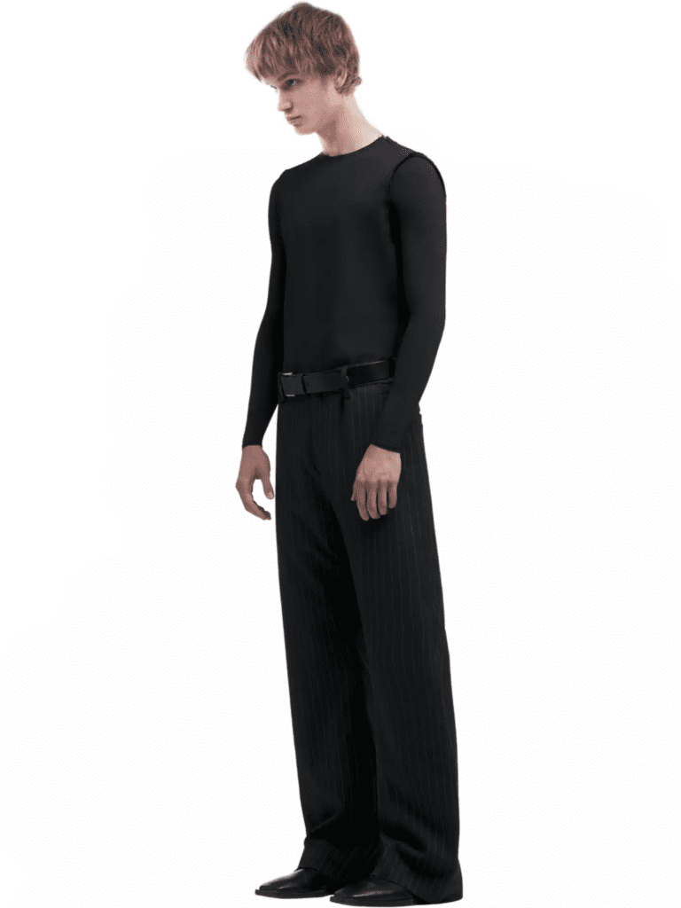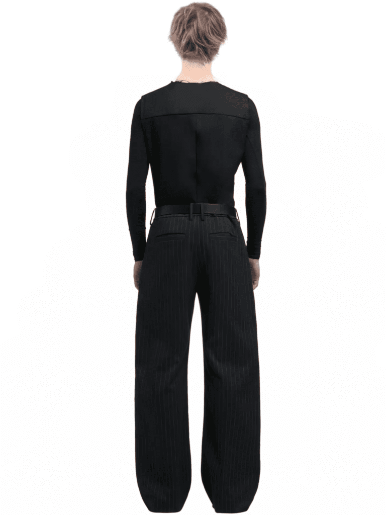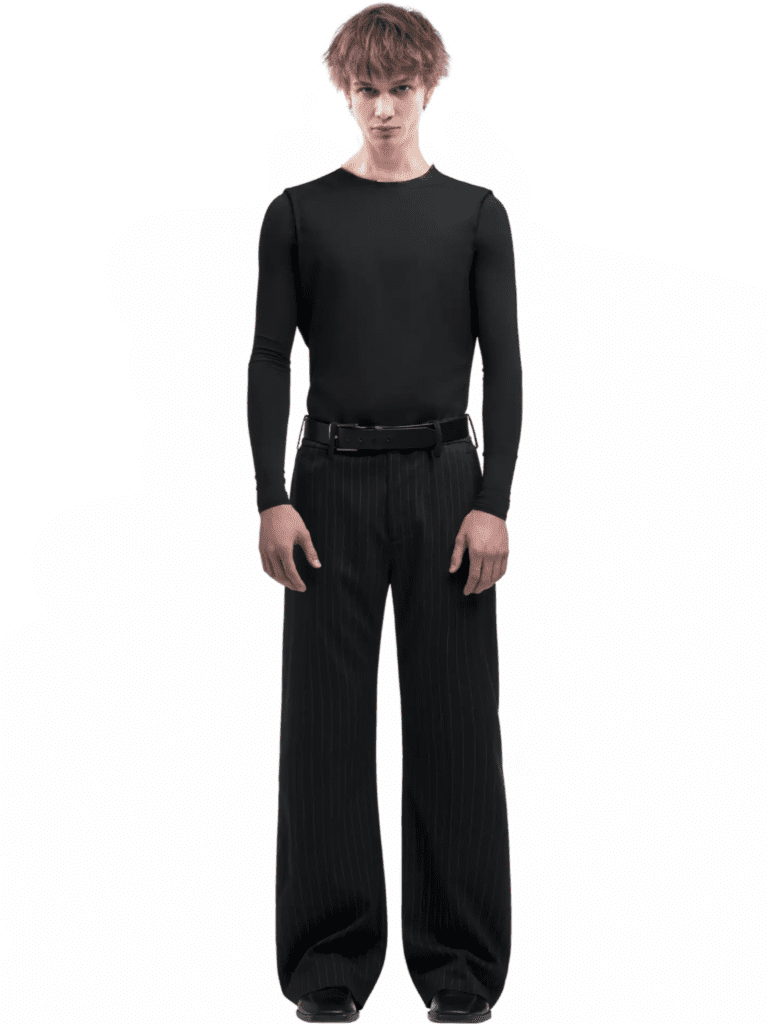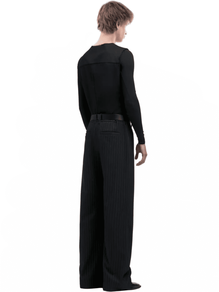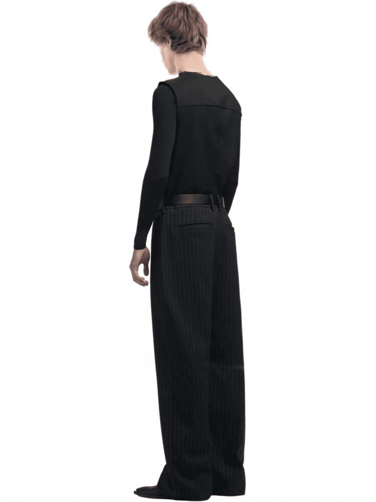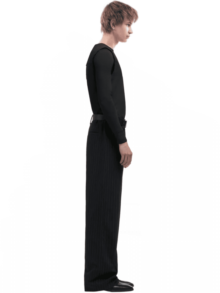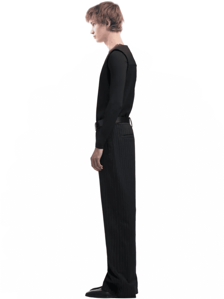 BURNING IN CALABASAS WOOL STRIPE NAVEY SUITING PANT.