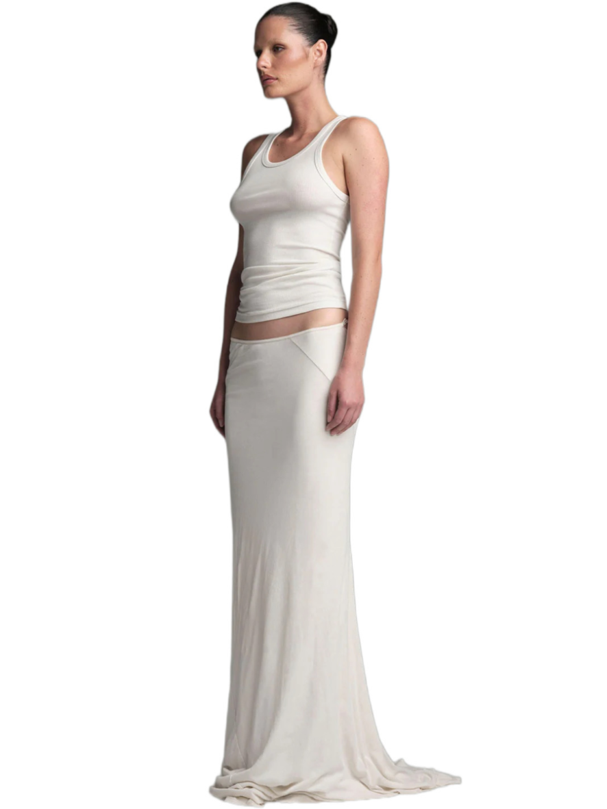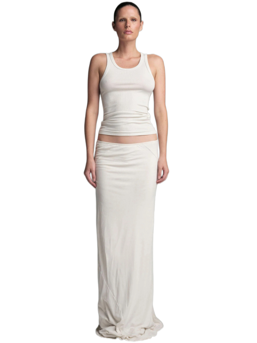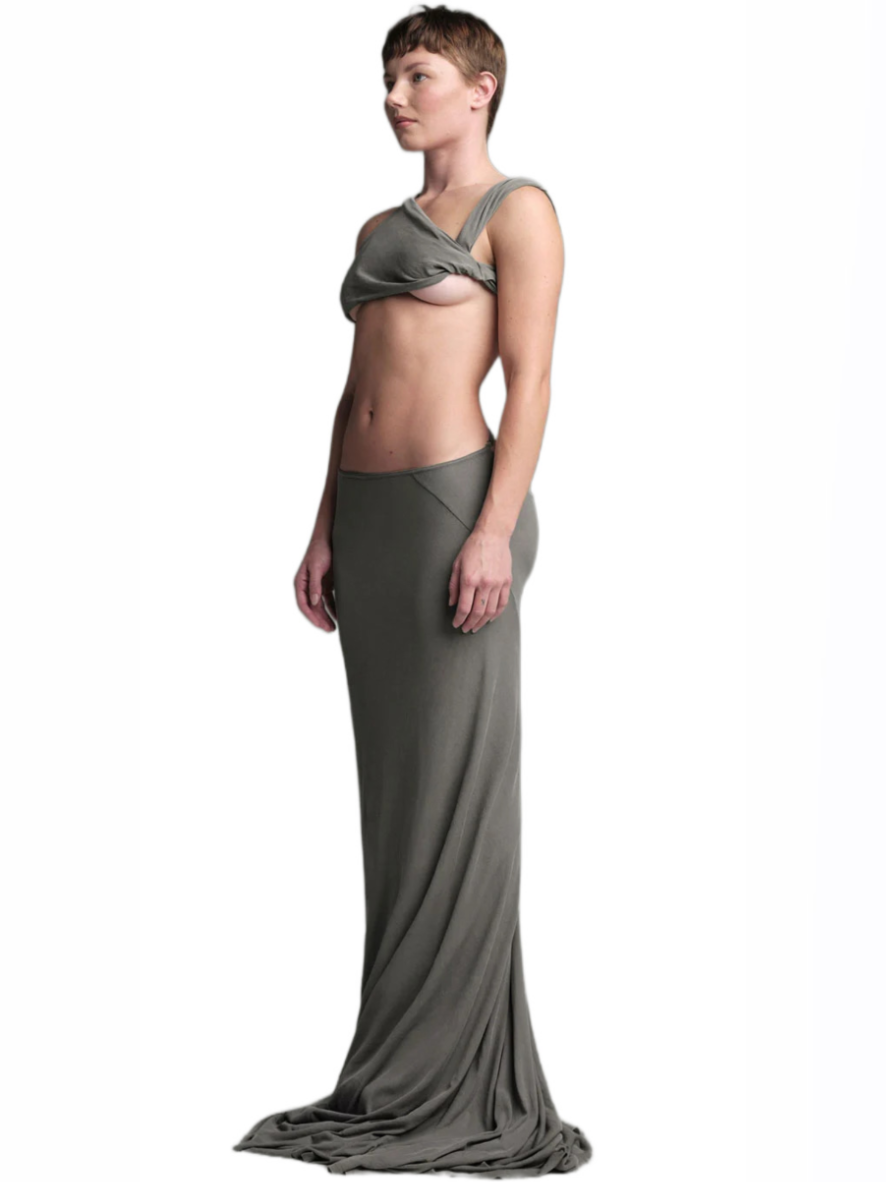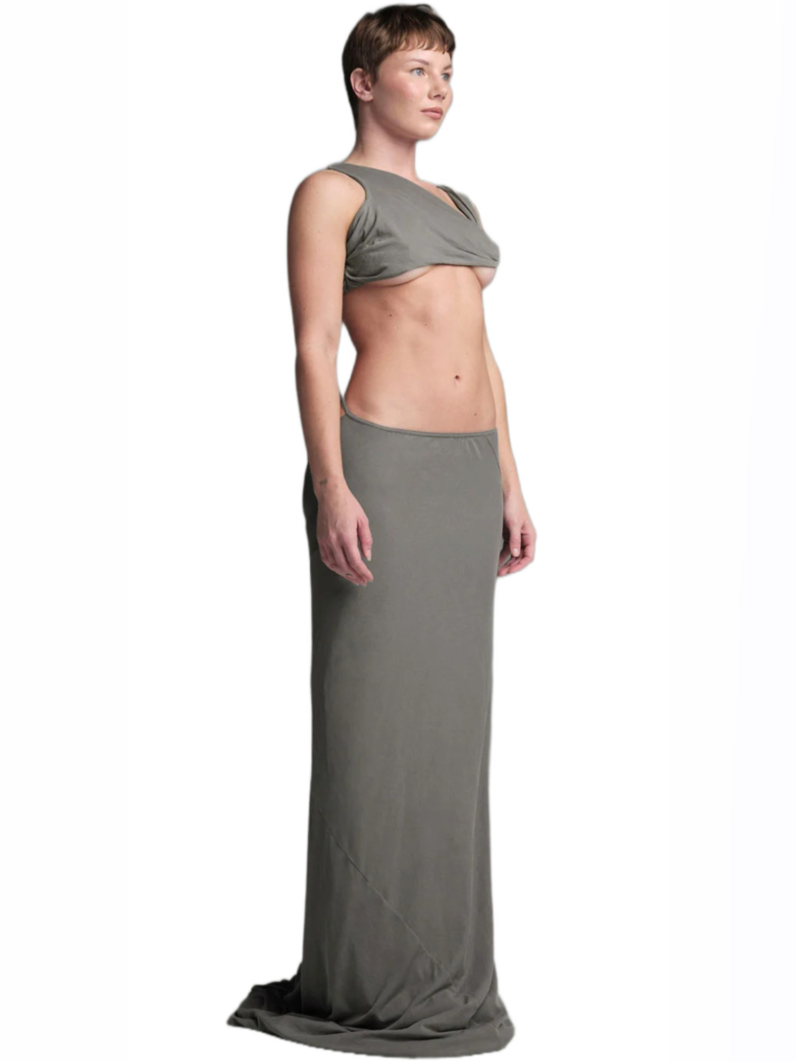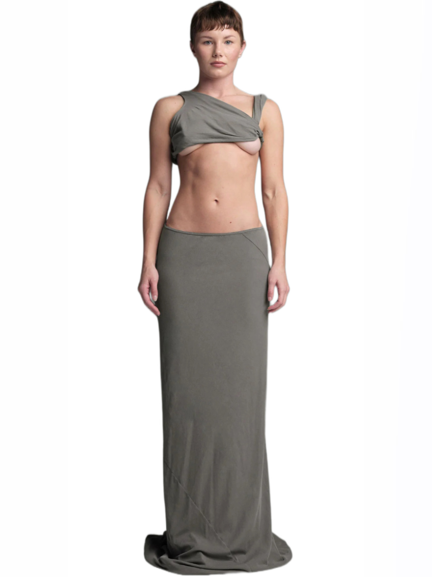 Made from a delicate and soft fabric, this tube skirt features a classic fit at the front and a high slit opening for an alluring touch. Whether you’re heading out for a social event or enjoying a cozy day at home, its buttery-soft feel makes it versatile for various occasions. The Slip skirt, with its comfortable jersey fabric and slightly flared, raw-cut hem, adds an avant-garde aesthetic to your wardrobe—a perfect staple that blends style and comfort.