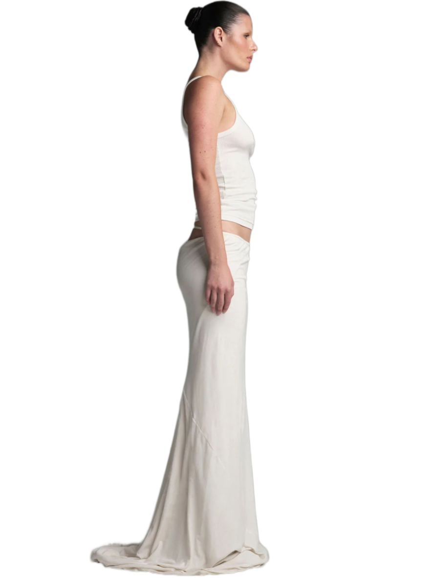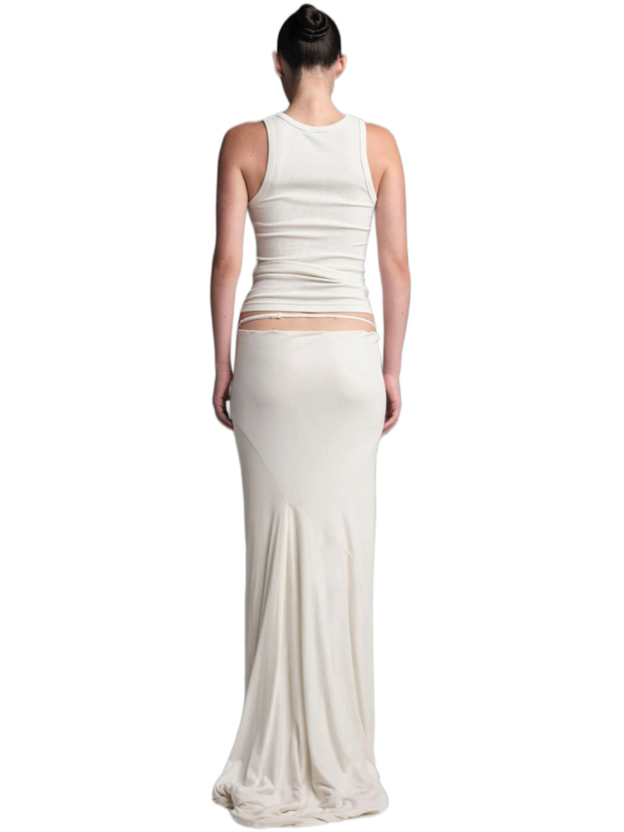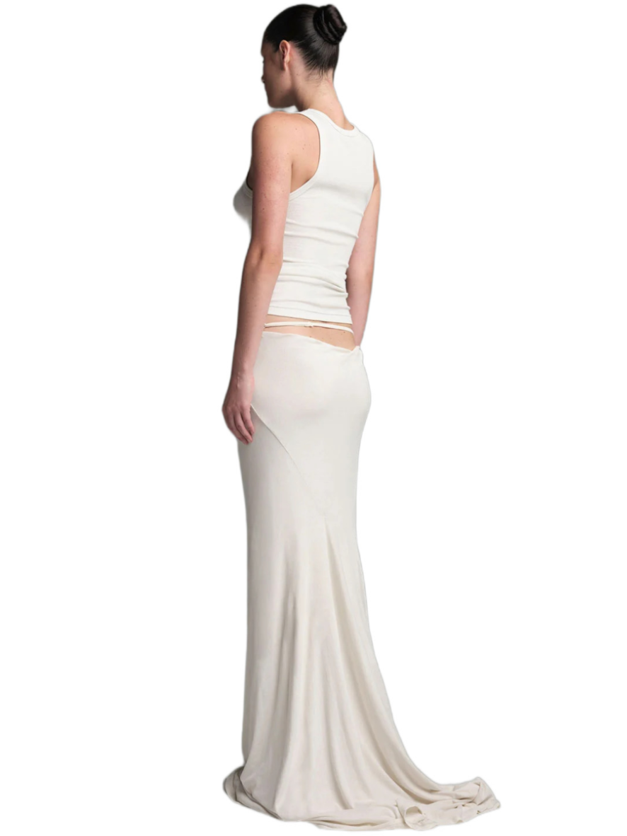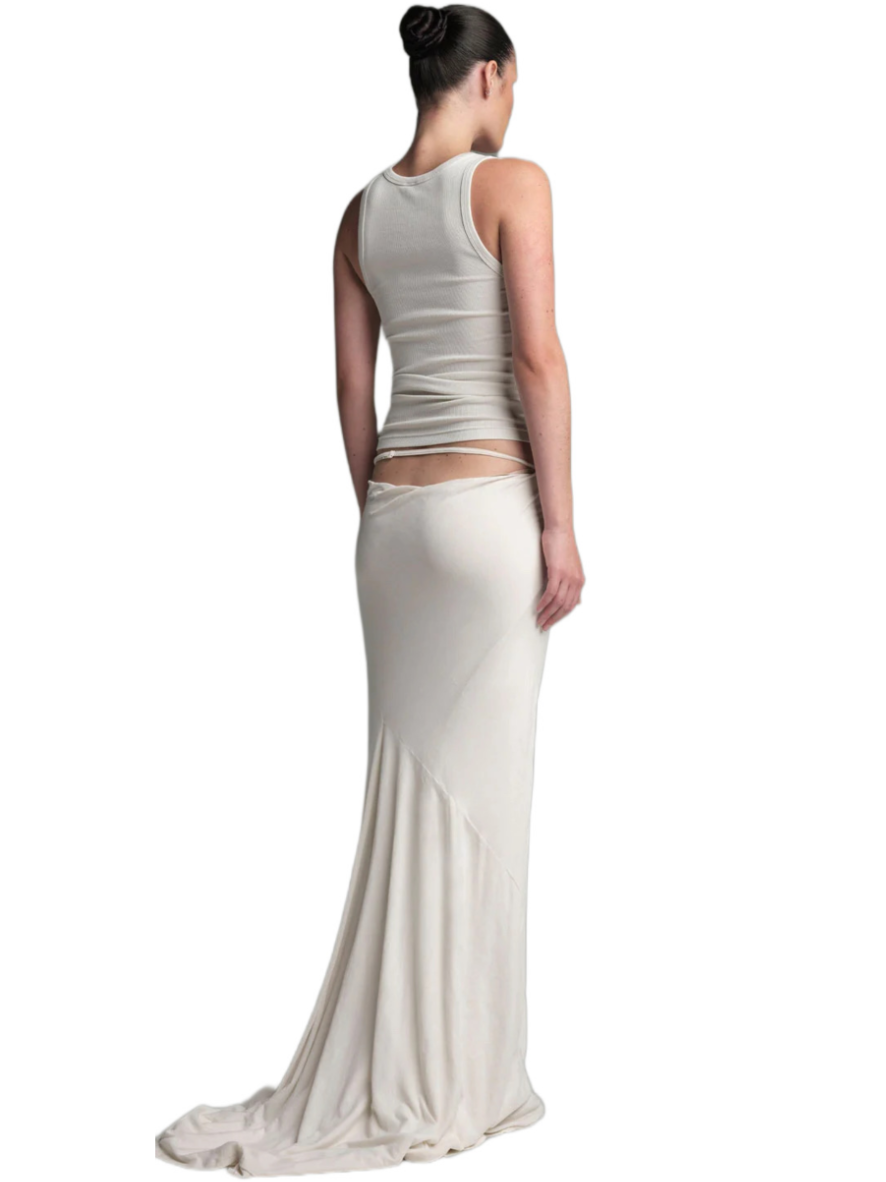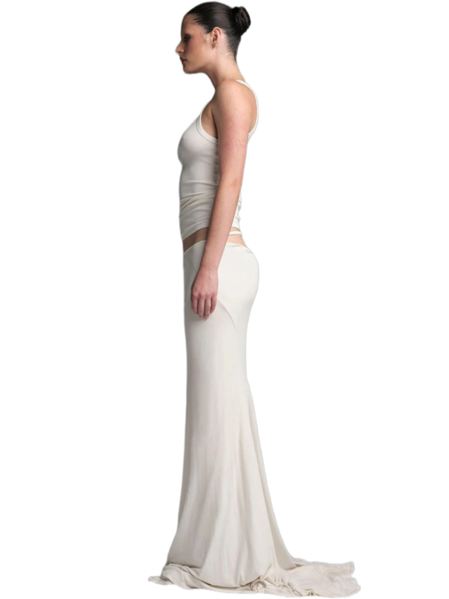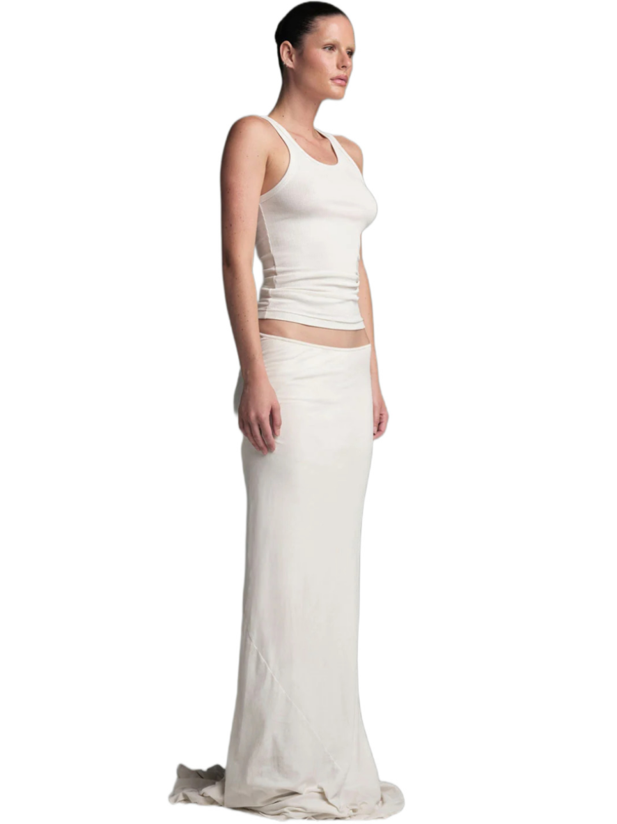 Made from a delicate and soft fabric, this tube skirt features a classic fit at the front and a high slit opening for an alluring touch. Whether you’re heading out for a social event or enjoying a cozy day at home, its buttery-soft feel makes it versatile for various occasions. The Slip skirt, with its comfortable jersey fabric and slightly flared, raw-cut hem, adds an avant-garde aesthetic to your wardrobe—a perfect staple that blends style and comfort.