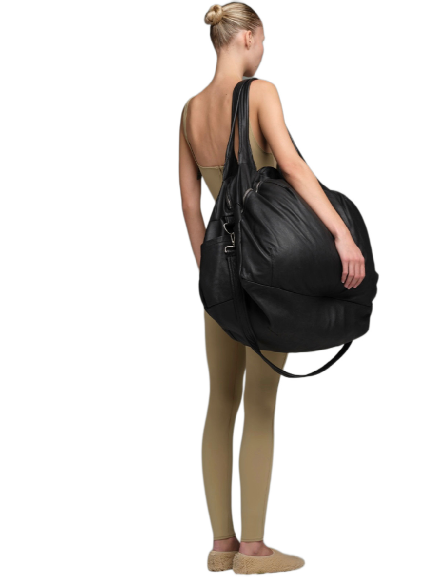 In the luxurious midnight hue of Ebony, this duffle is a customer and team favorite for its beautiful color and texture. Care for it by spot cleaning with a damp cloth and using our leather cleaner and conditioner to maintain its beautiful texture and shine.