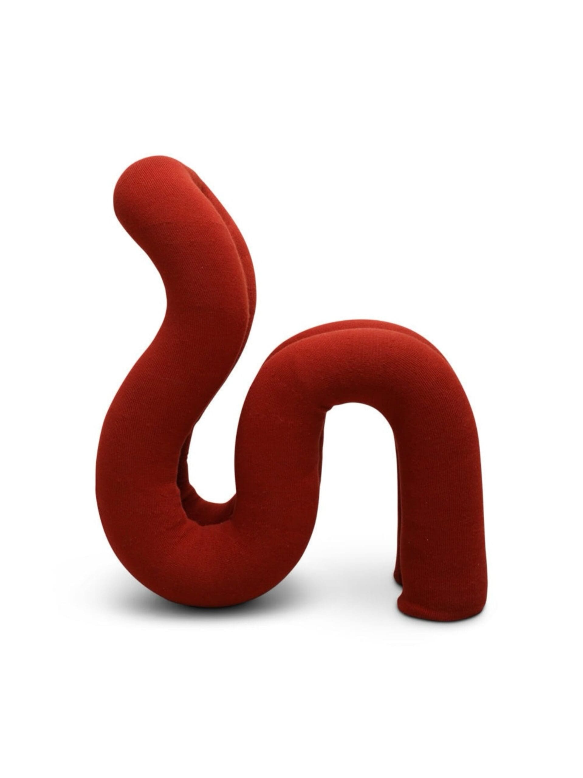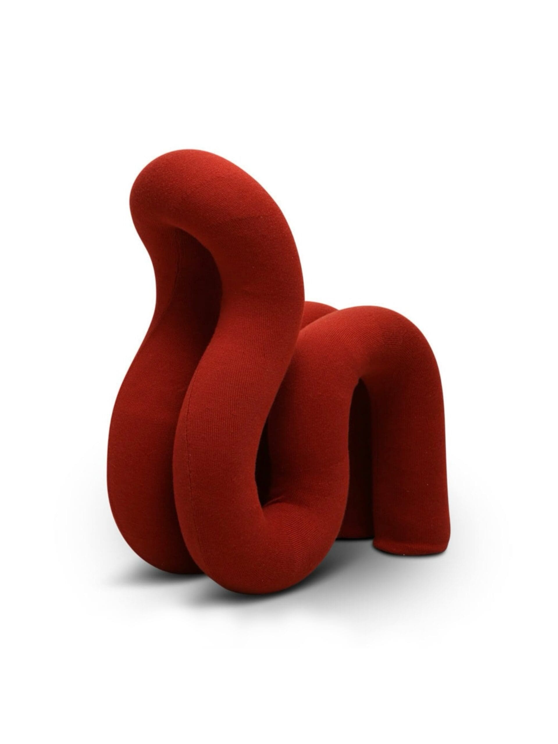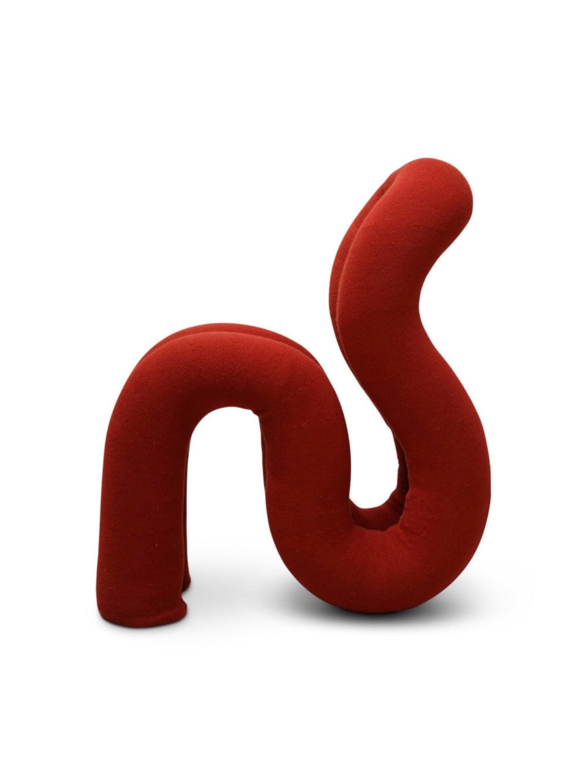 A chair composed of seven curving gestures of a soft cylinder. The form is rigid yet soft.