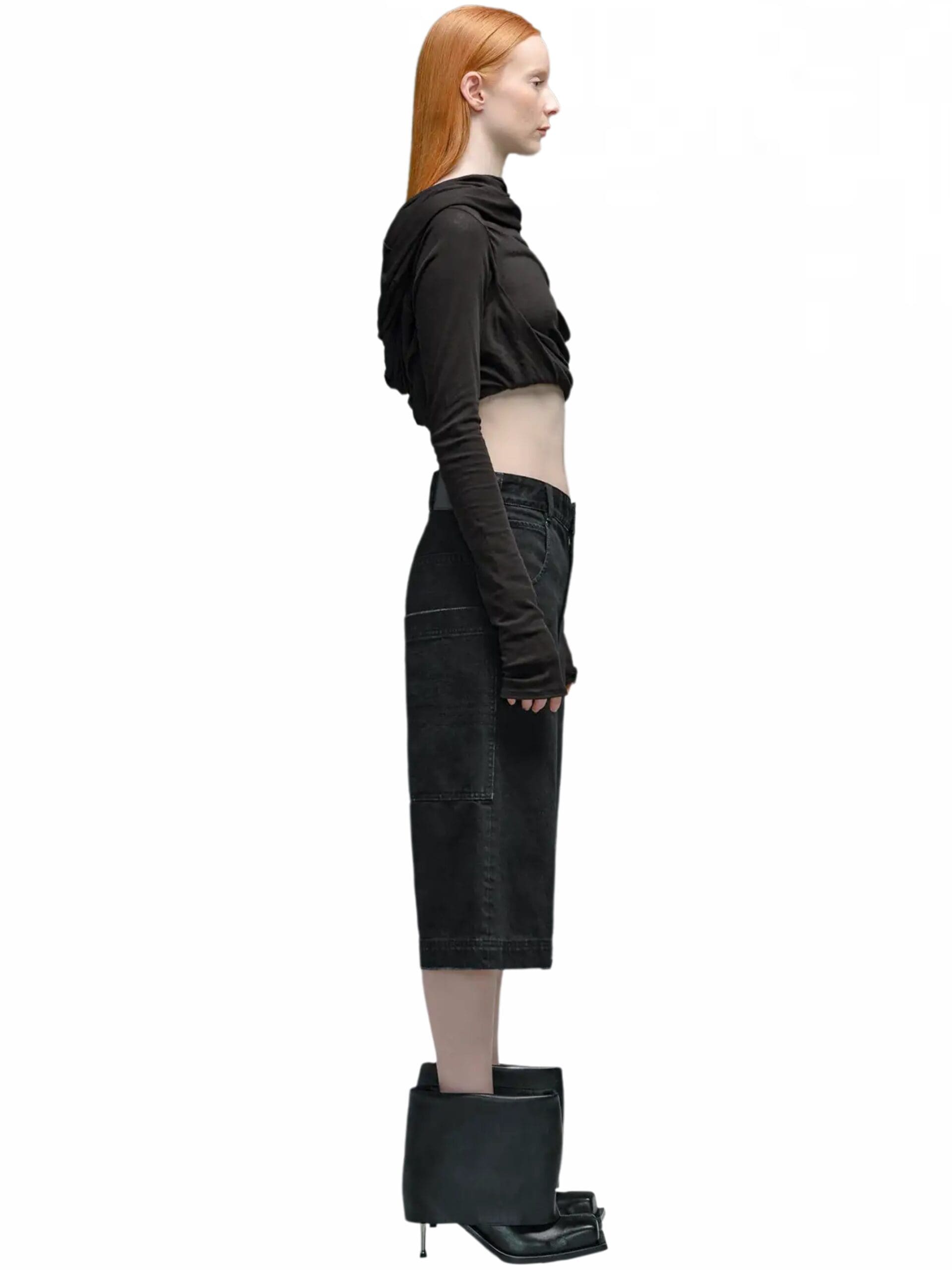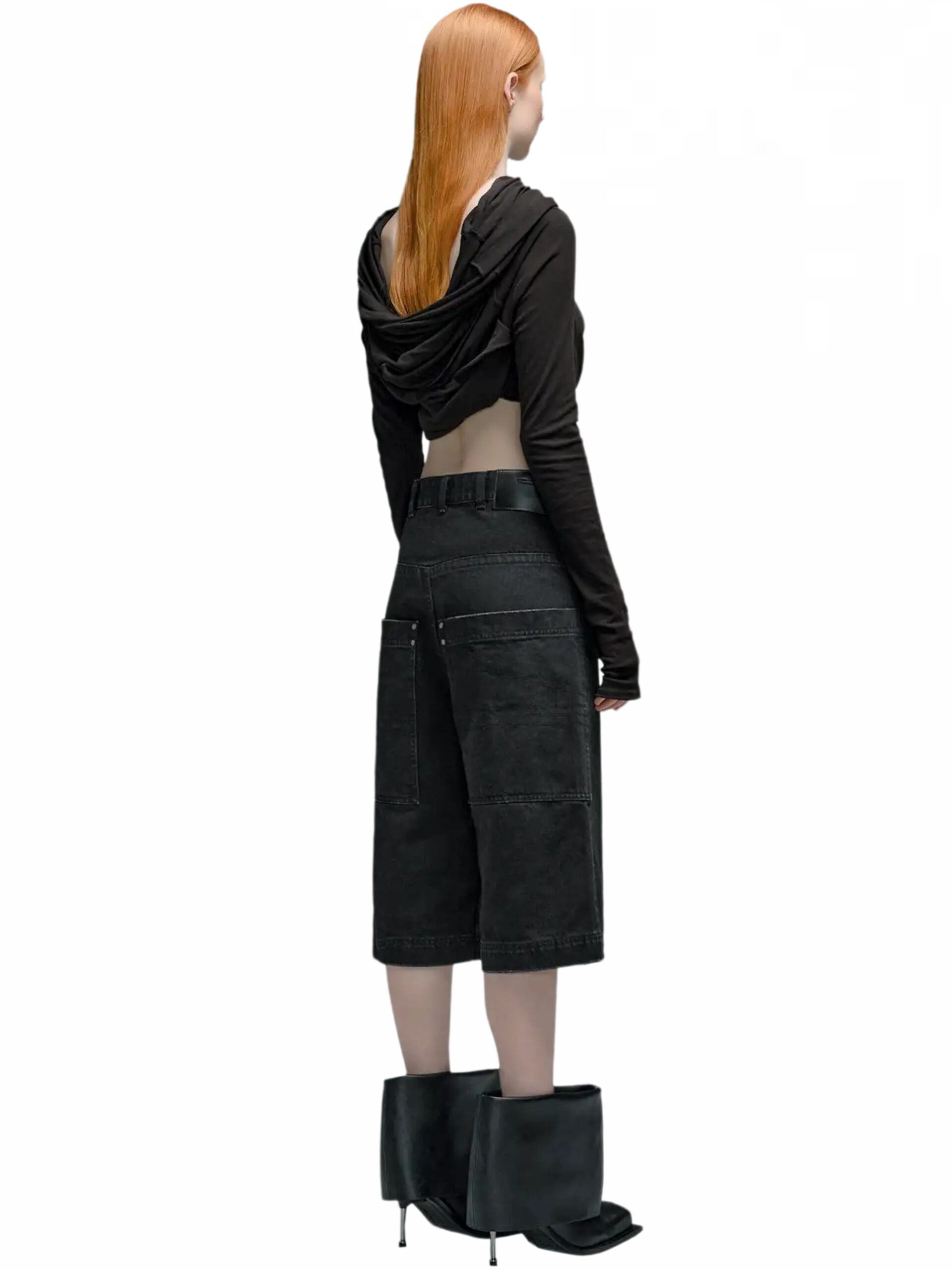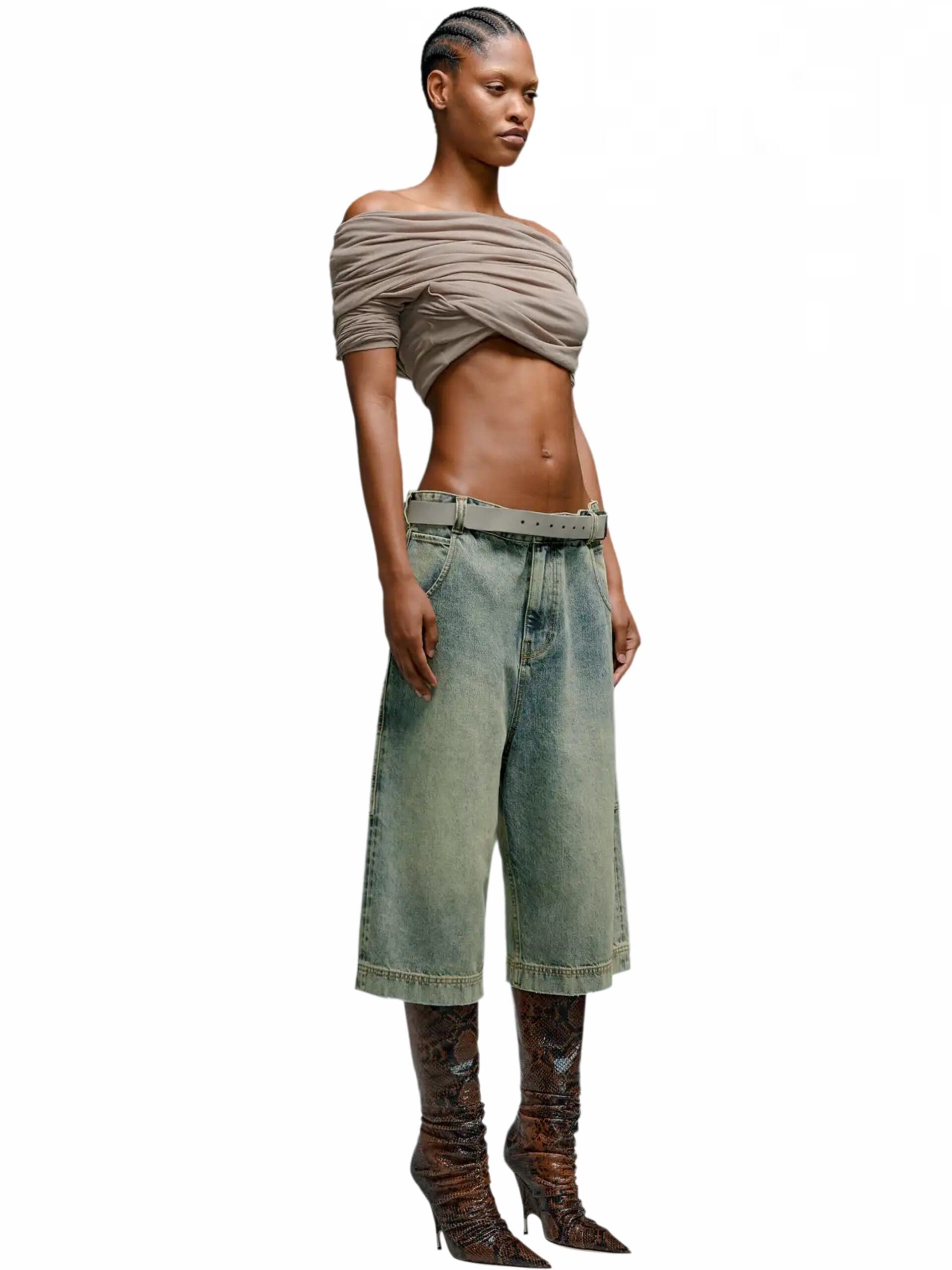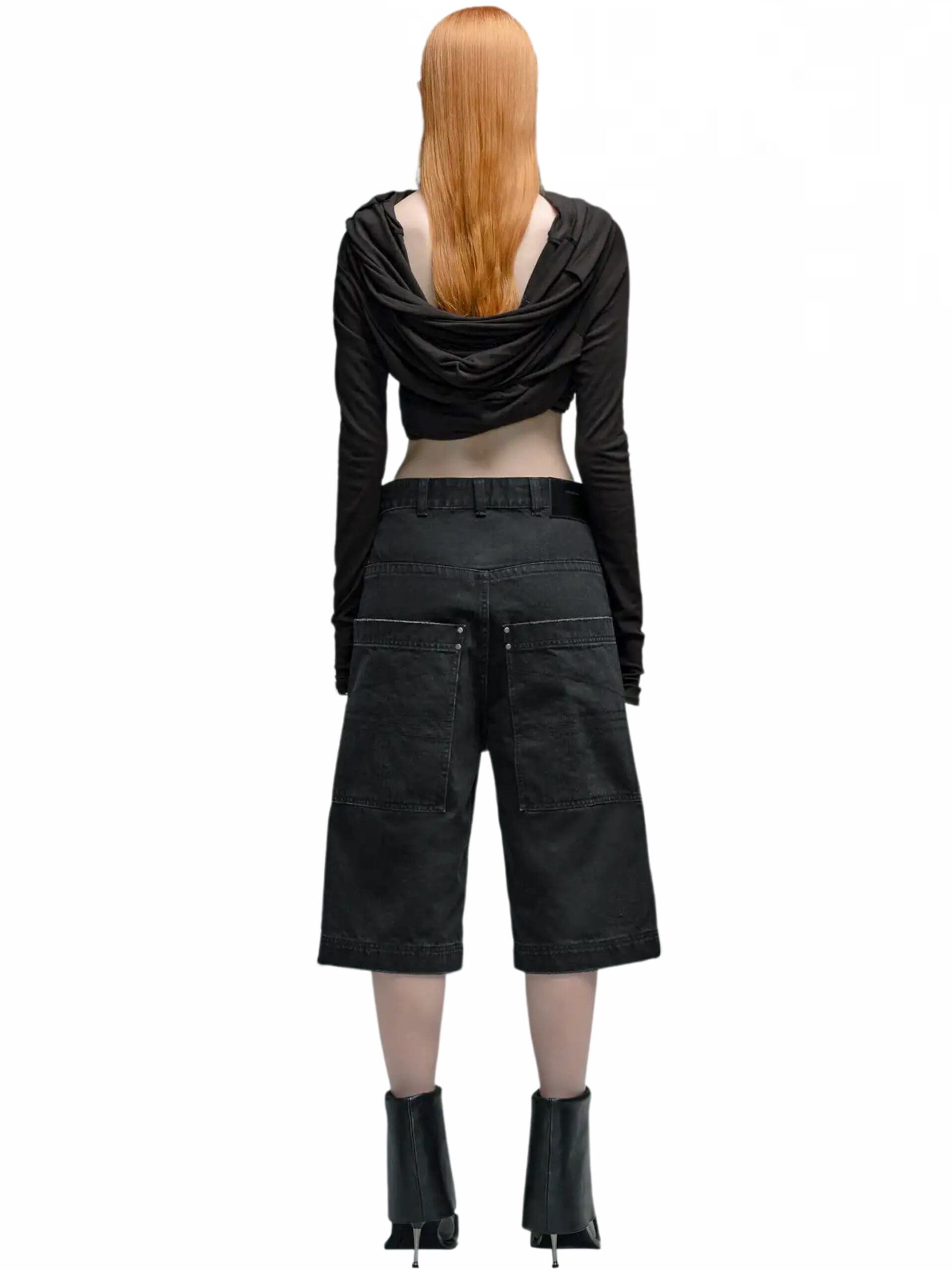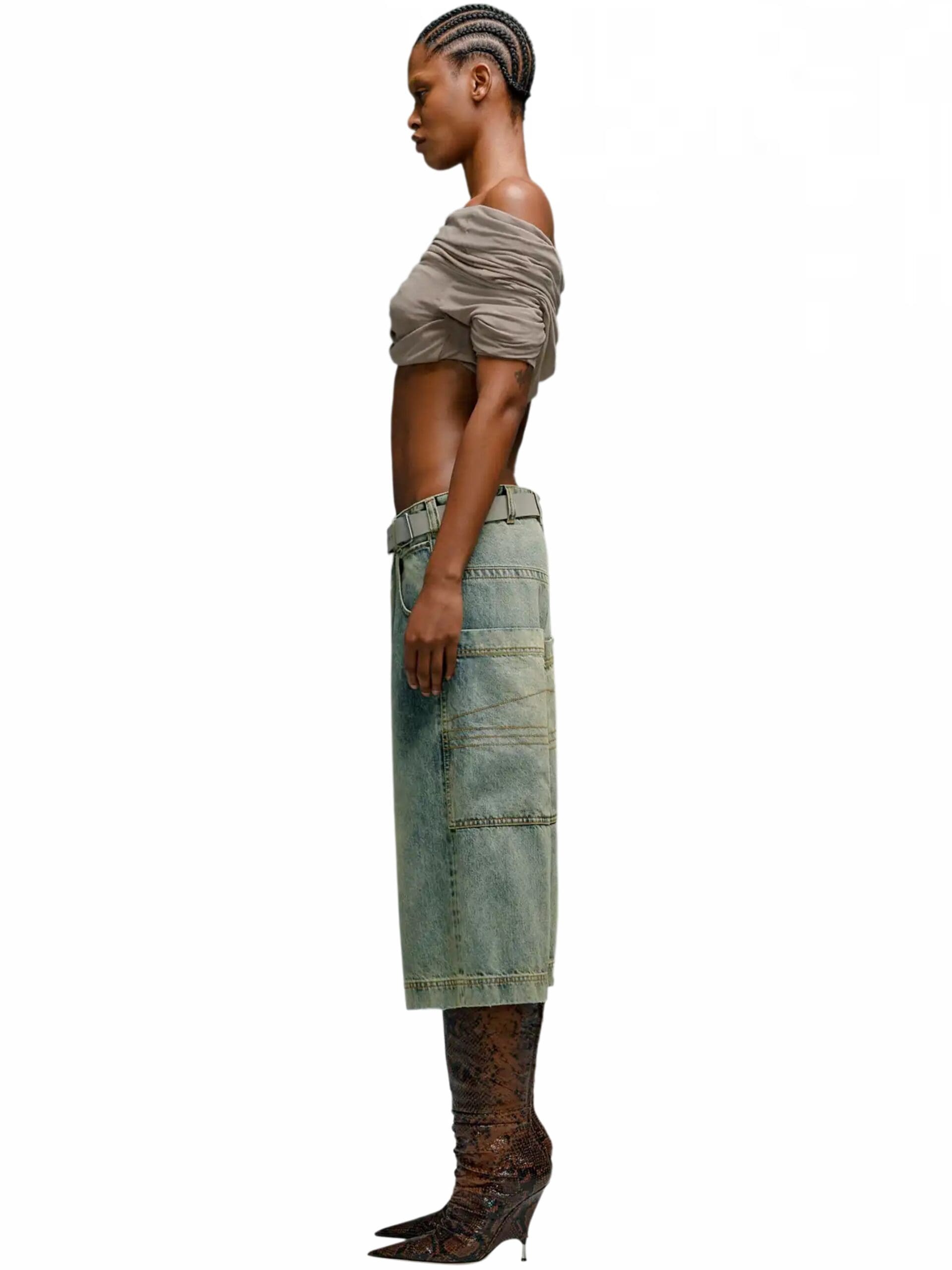 Inspired by nostalgic references, these shorts boast a high-rise waist and a bleached denim finish, lending a casual yet modern appeal. The flared style adds a hint of vintage charm, infusing each pair with a unique and stylish edge.