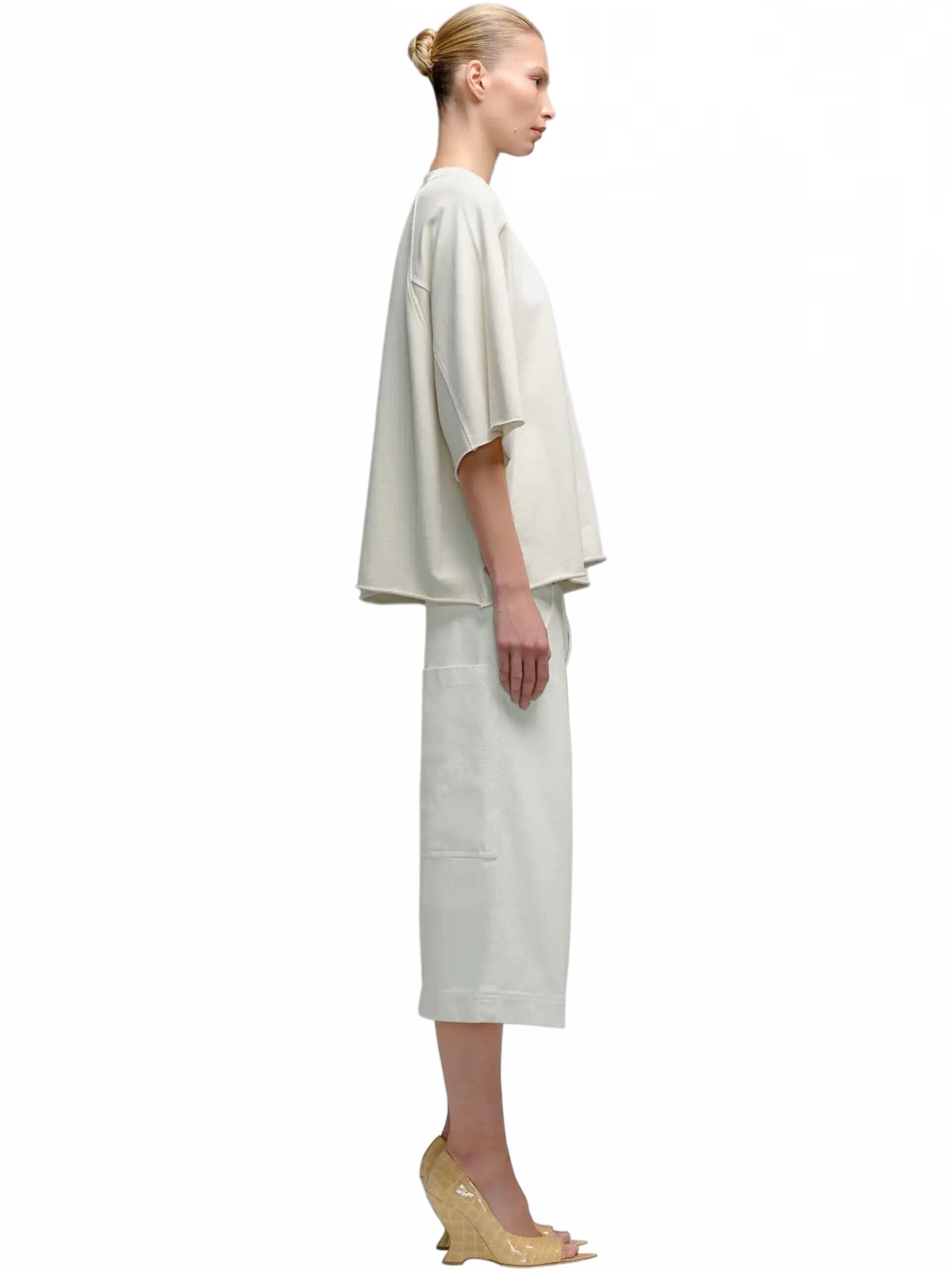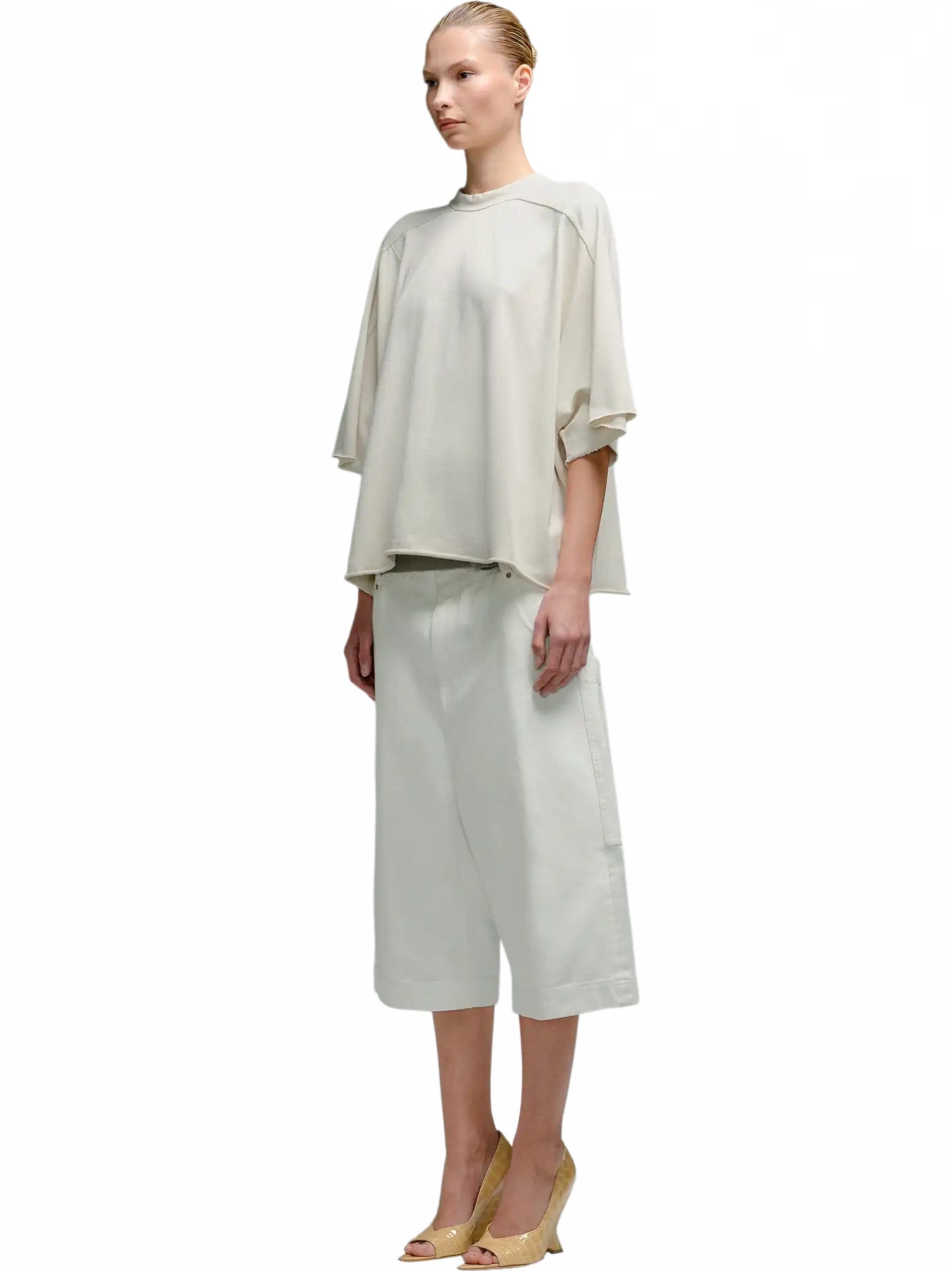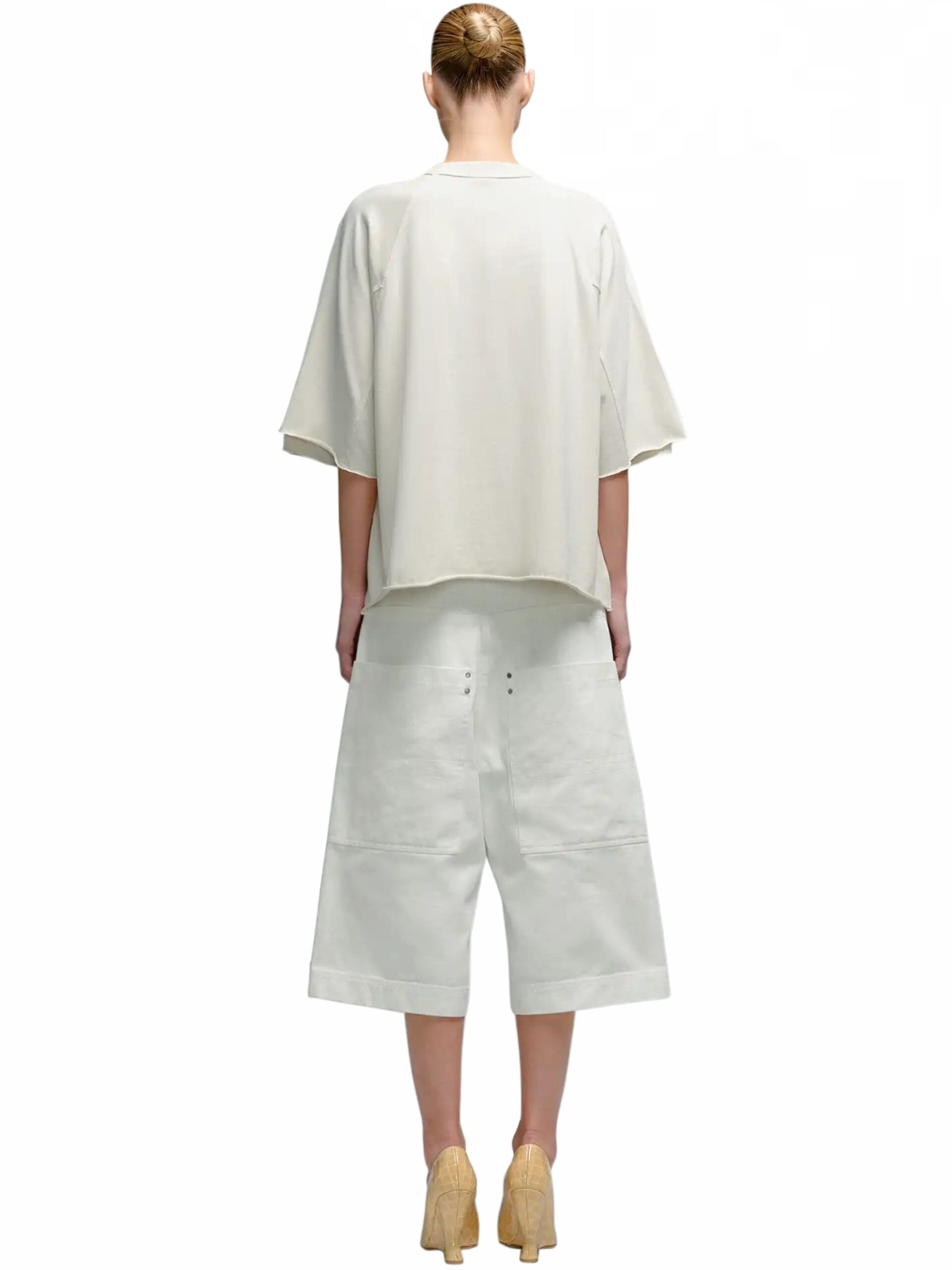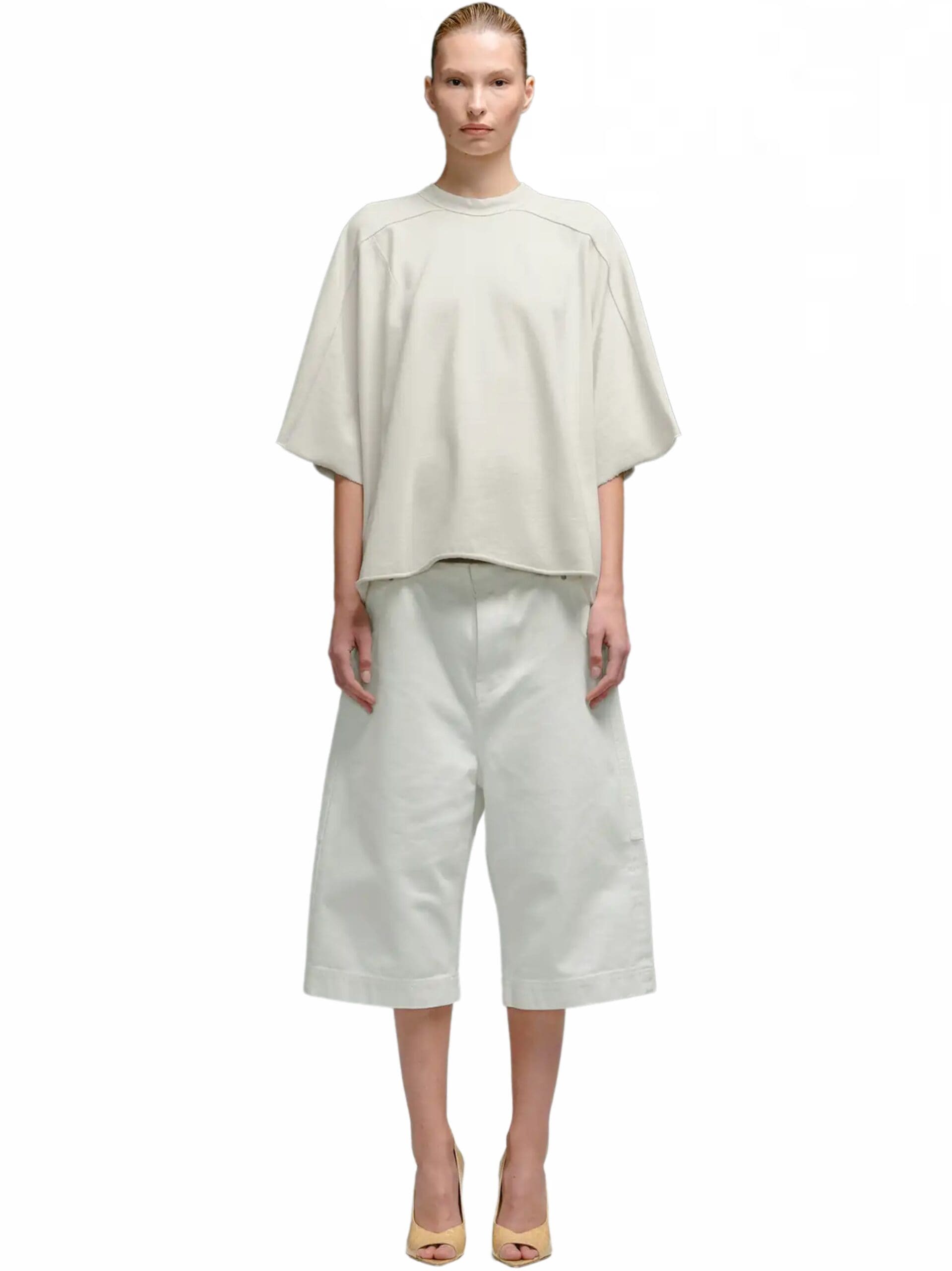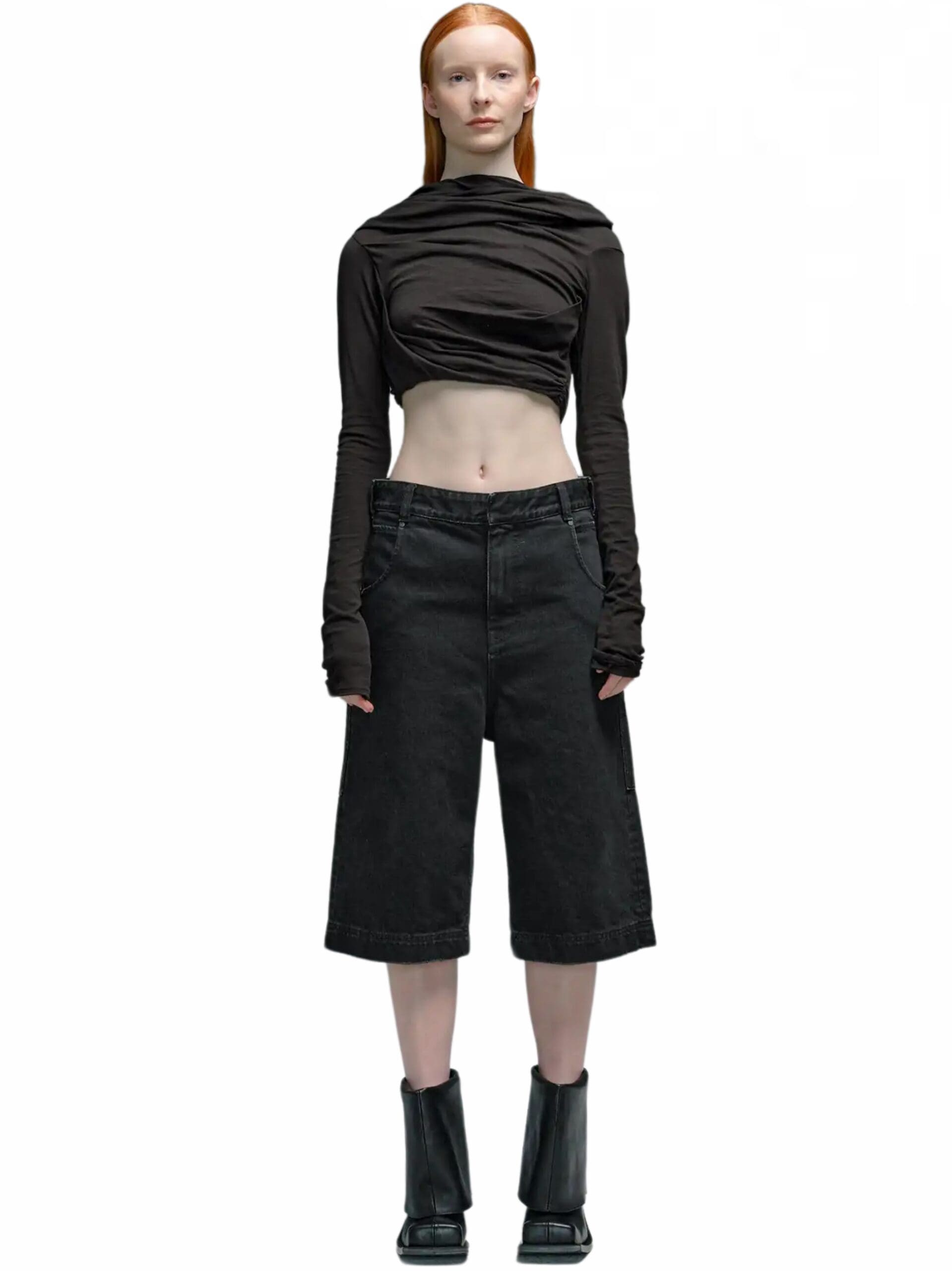 Inspired by nostalgic references, these shorts boast a high-rise waist and a bleached denim finish, lending a casual yet modern appeal. The flared style adds a hint of vintage charm, infusing each pair with a unique and stylish edge.