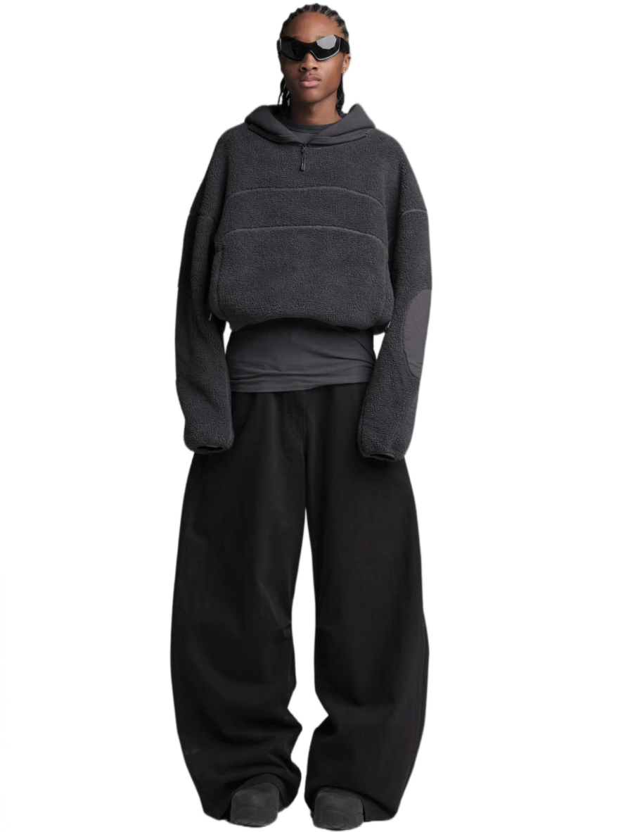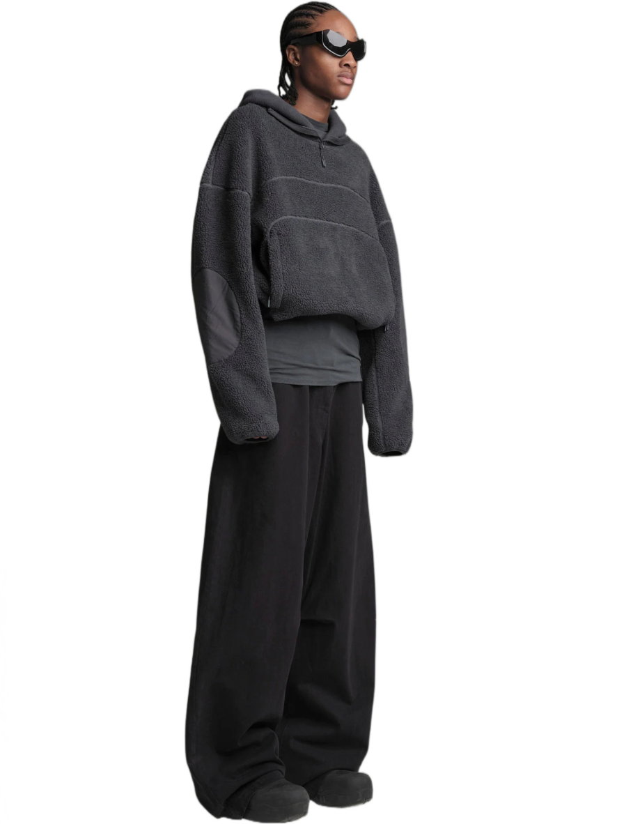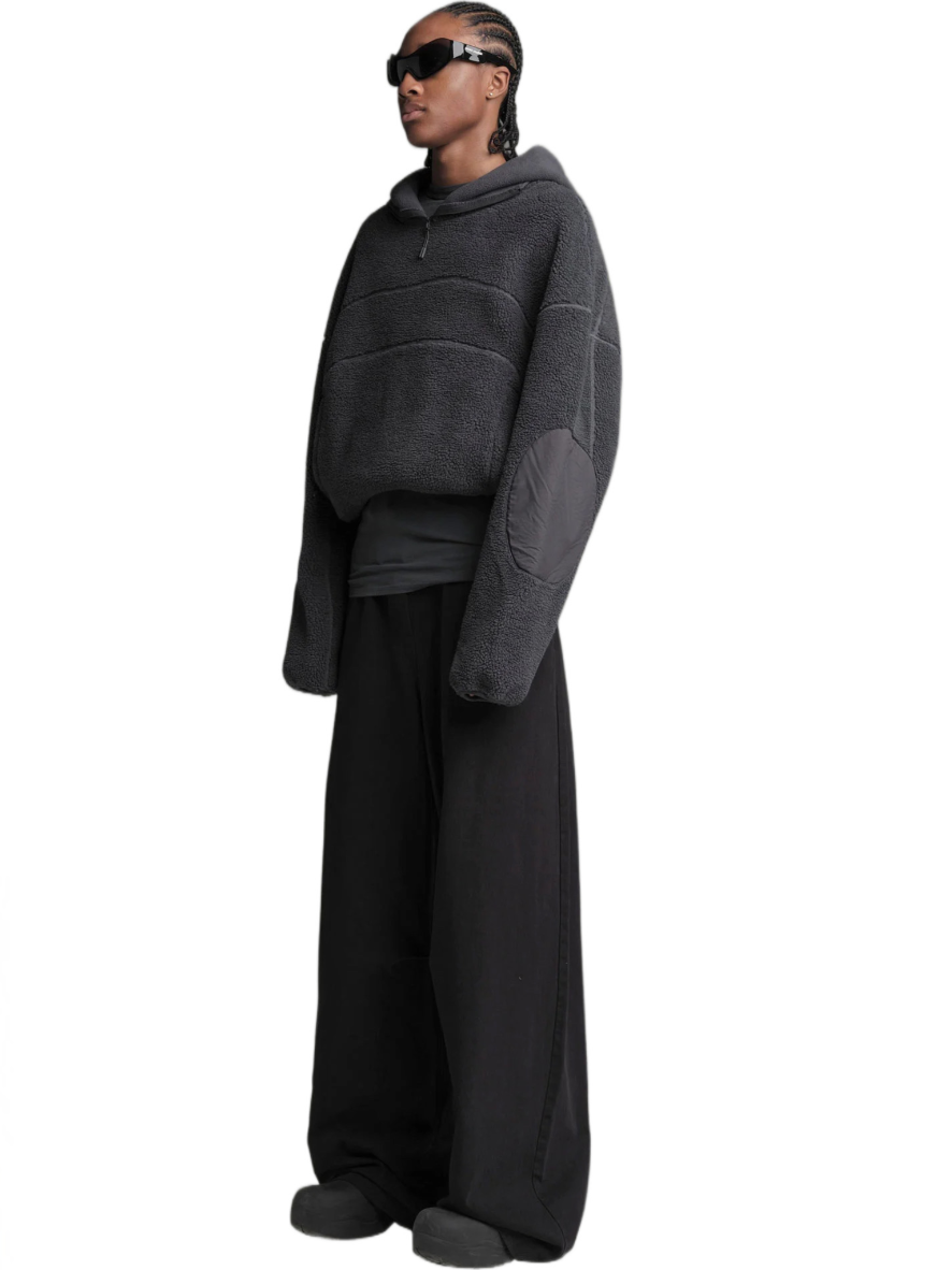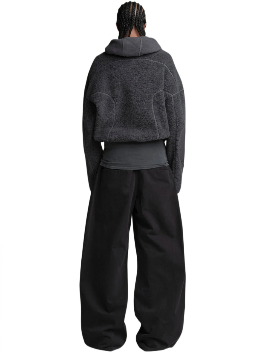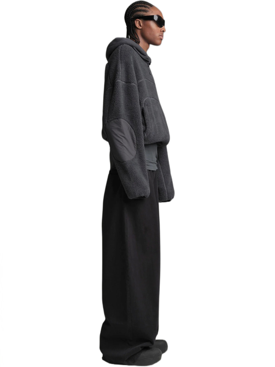 Experience comfort and contemporary style with our BURNING IN CALABASAS Double Fleece Jacket—an oversized piece with a versatile, convertible design that effortlessly transforms into a vest with removable sleeves. The innovative use of recycled technical fabric details adds a distinctive touch, creating a striking contrast in materials.
