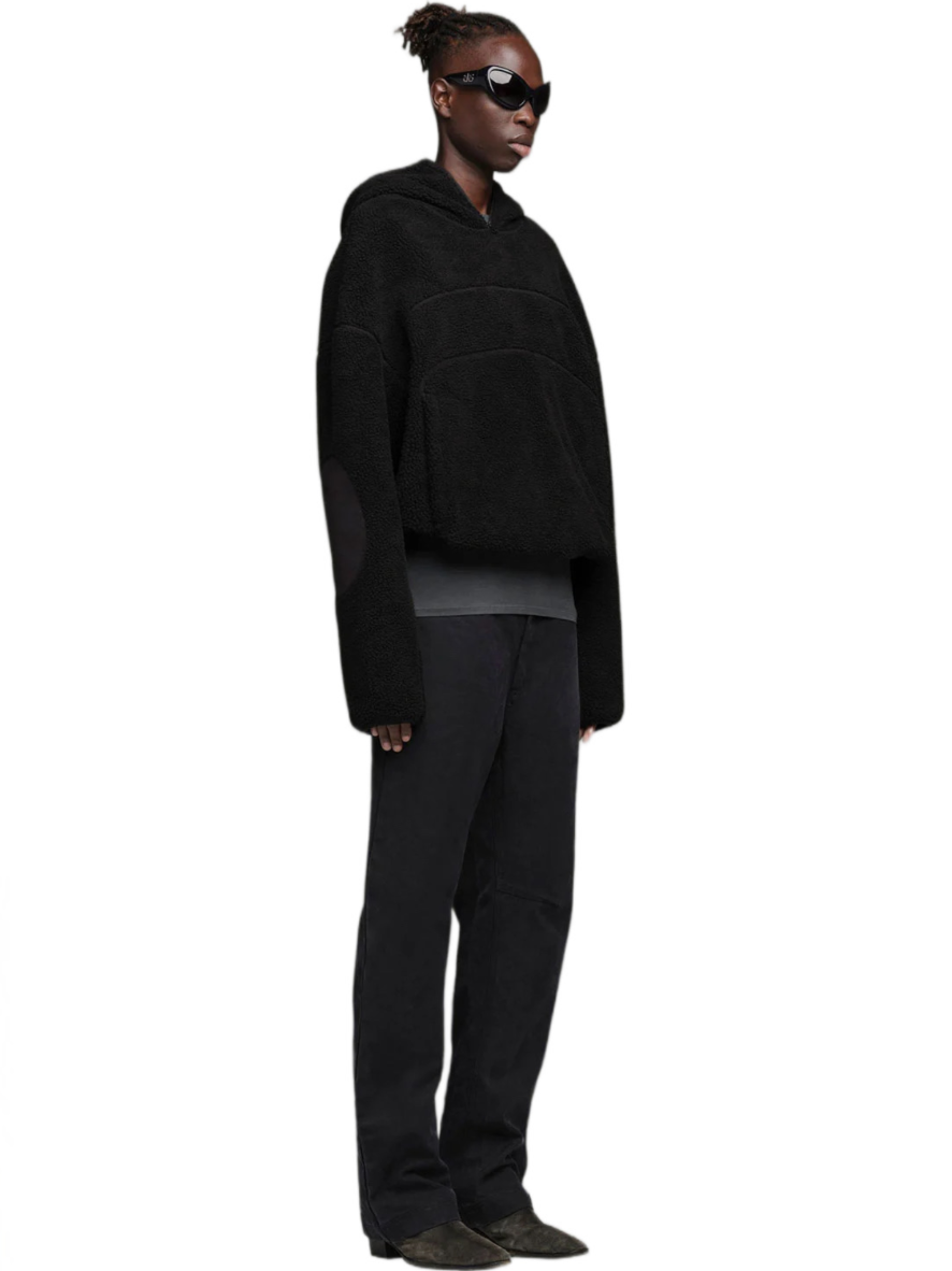 The garment is meticulously finished with elaborate details, showcasing heat-sealed tape seams for a seamless look. The cozy sherpa fabric ensures warmth and comfort, making our Foxy Sherpa Jacket a go-to choice for your studio sessions. With features like a front-zip closure, oversized silhouette, and ribbed cuffs and hem, this jacket delivers both functionality and fashion.