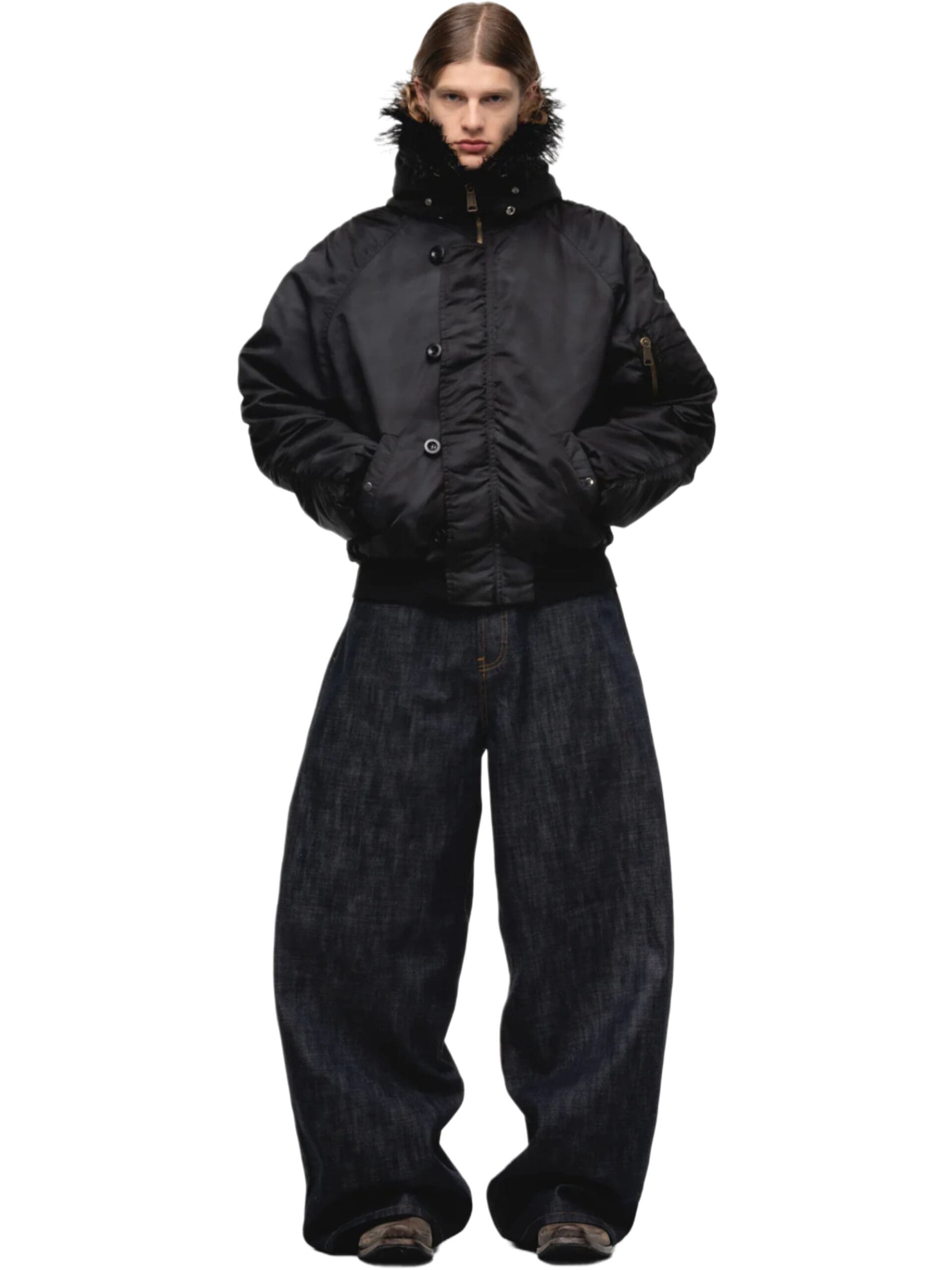 This jacket’s features are as versatile as your lifestyle—duck down and duck feather padding, classic hood, funnel neck, front touch-strap over zip-up fastening, drop shoulder, long sleeves, two front welt pockets, internal zip-fastening pocket, and a straight elasticated drawstring hem. Elevate your winter wardrobe with the BURNING IN CALABASAS Puff Hoodie Bomber, where Italian craftsmanship meets contemporary style.