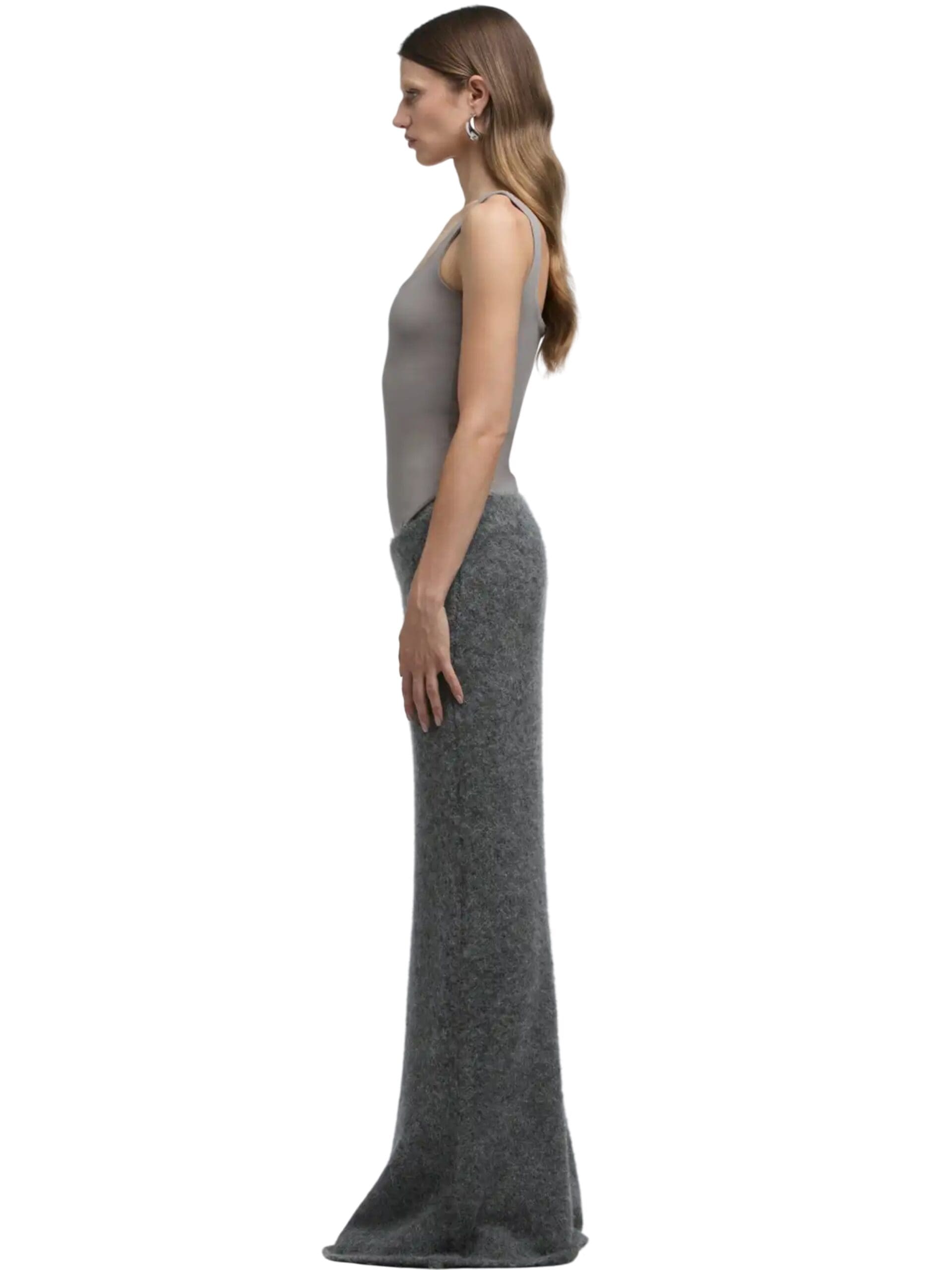 For those seeking effortless elegance, the Cashmere Maxi Skirt is a must-have. Crafted from 100% premium, sustainable cashmere, it boasts a soft knit texture and ankle-length silhouette. Featuring a pull-on waistband and subtle ribbed details, this skirt offers a simple yet refined look that transitions seamlessly from day to evening.
