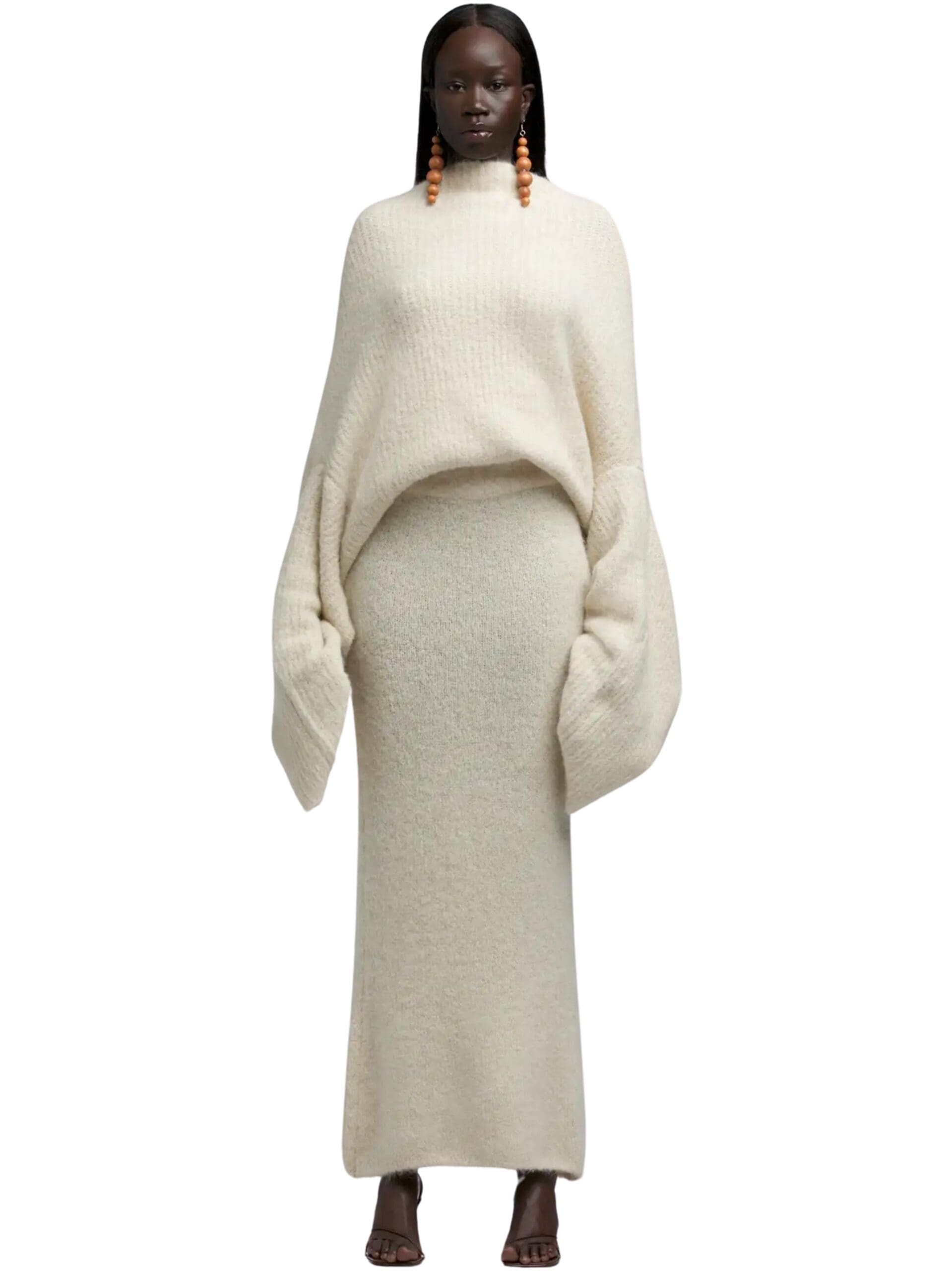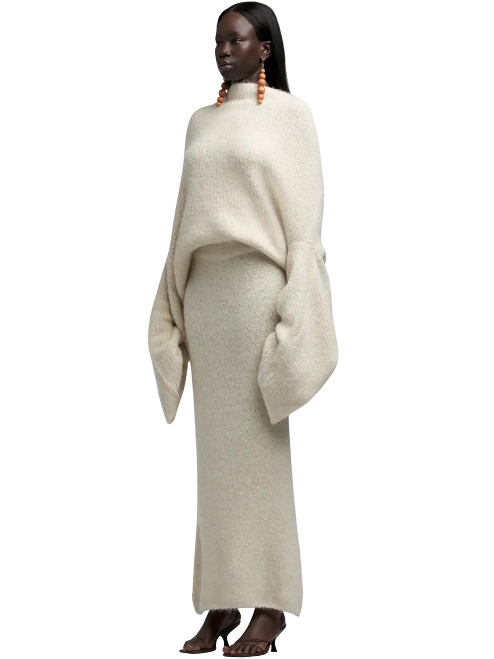 Perfect for winter, the Fluffy Skirt is expertly crafted from a blend of alpaca and merino wool, a signature Hartford material known for its softness and durability. Its midi length and straight cut make it a versatile wardrobe staple, effortlessly complementing any cold-weather ensemble.