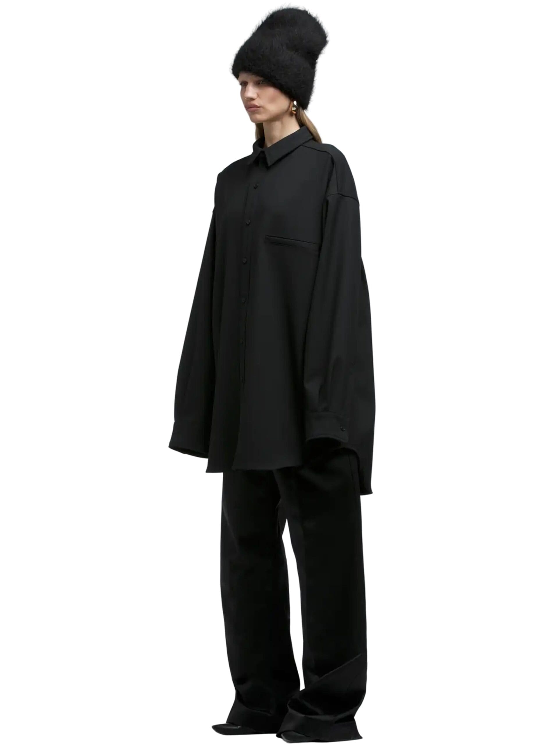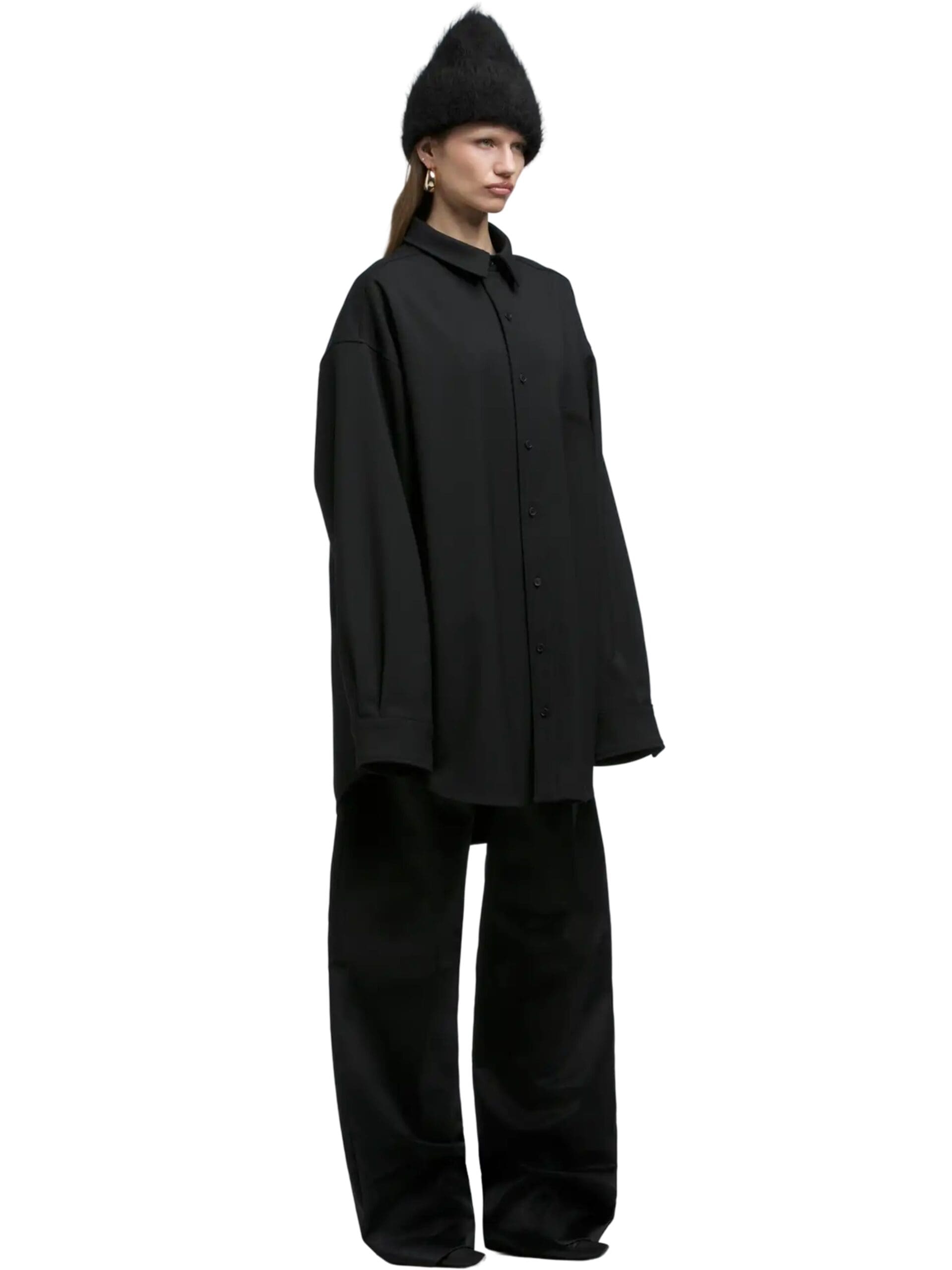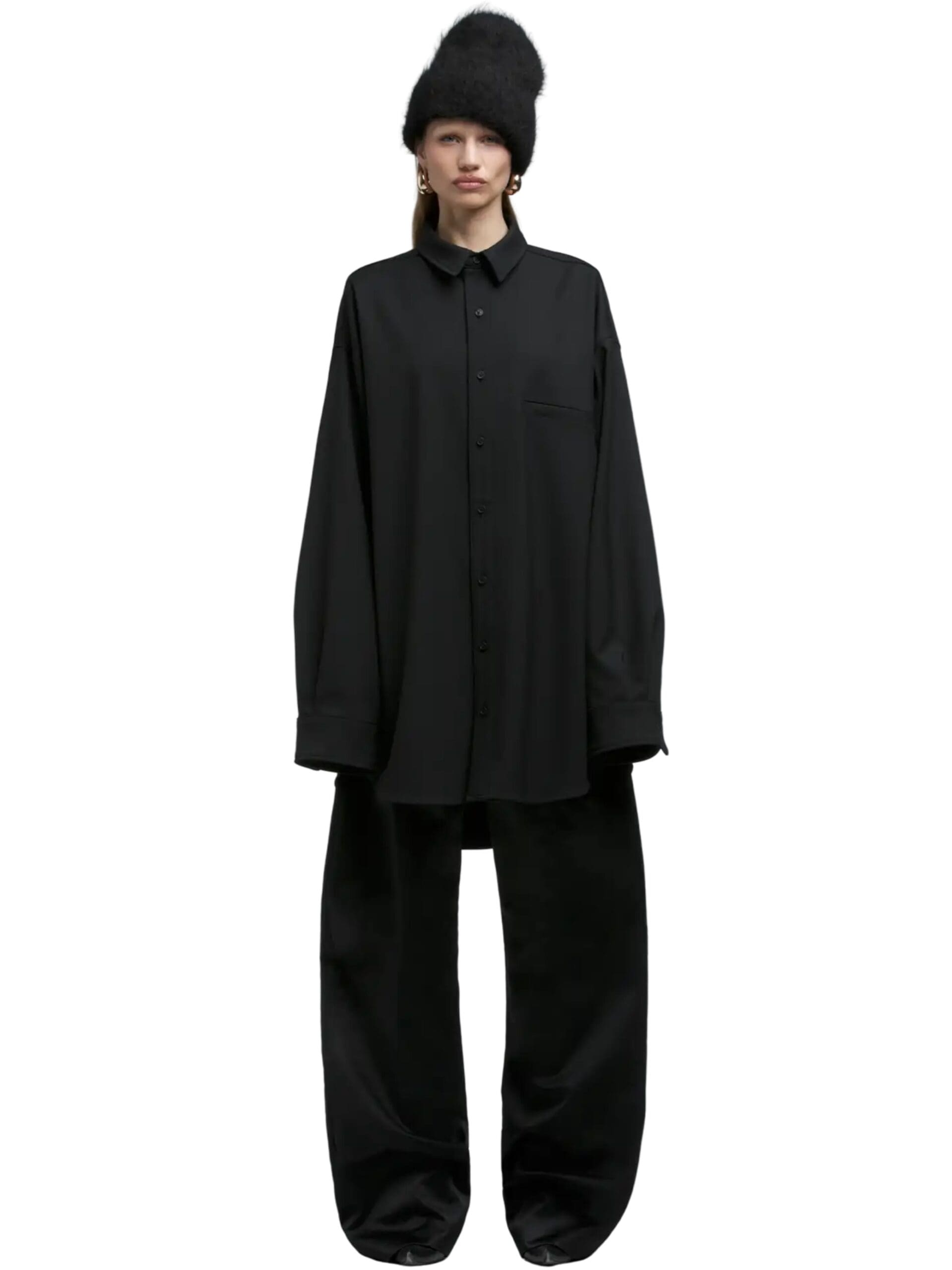 Forget everything you thought you knew about wool. The Burning in Calabasas Merino Wool Shirt is redefining luxury and performance with its lightweight, comfortable, and refined design. Crafted from ultra-fine S120s 2-ply Merino wool, this shirt offers astonishing natural performance while exuding sophistication. Woven by the renowned wool masters at Reda, a 150-year-old Italian mill, this shirt is more than just a garment—it’s a revolution in wool.this black oversized tailored shirt jacket features a pointed collar, long sleeves, and a single chest pocket fastened by a button front closure. crafted of wool, it features dropped shoulders and a straight hem extending to mid-thigh for a relaxed silhouette.