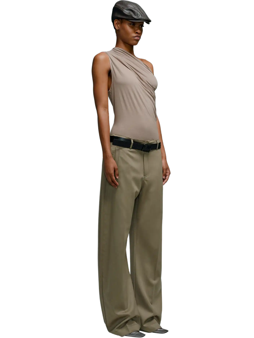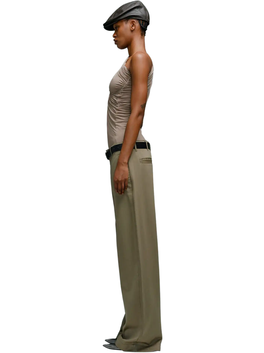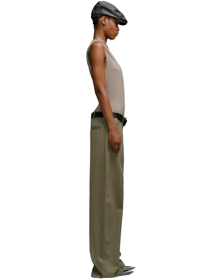 Every detail of the Montauk trousers speaks to our commitment to excellence. The luxurious black wool construction is accentuated by sleek side waist buckle detailing in a polished silver tone, elevating the trousers with a touch of sophistication. Pleated detailing adds depth and dimension to the silhouette, while the wide leg flared cut effortlessly blends classic style with contemporary flair.