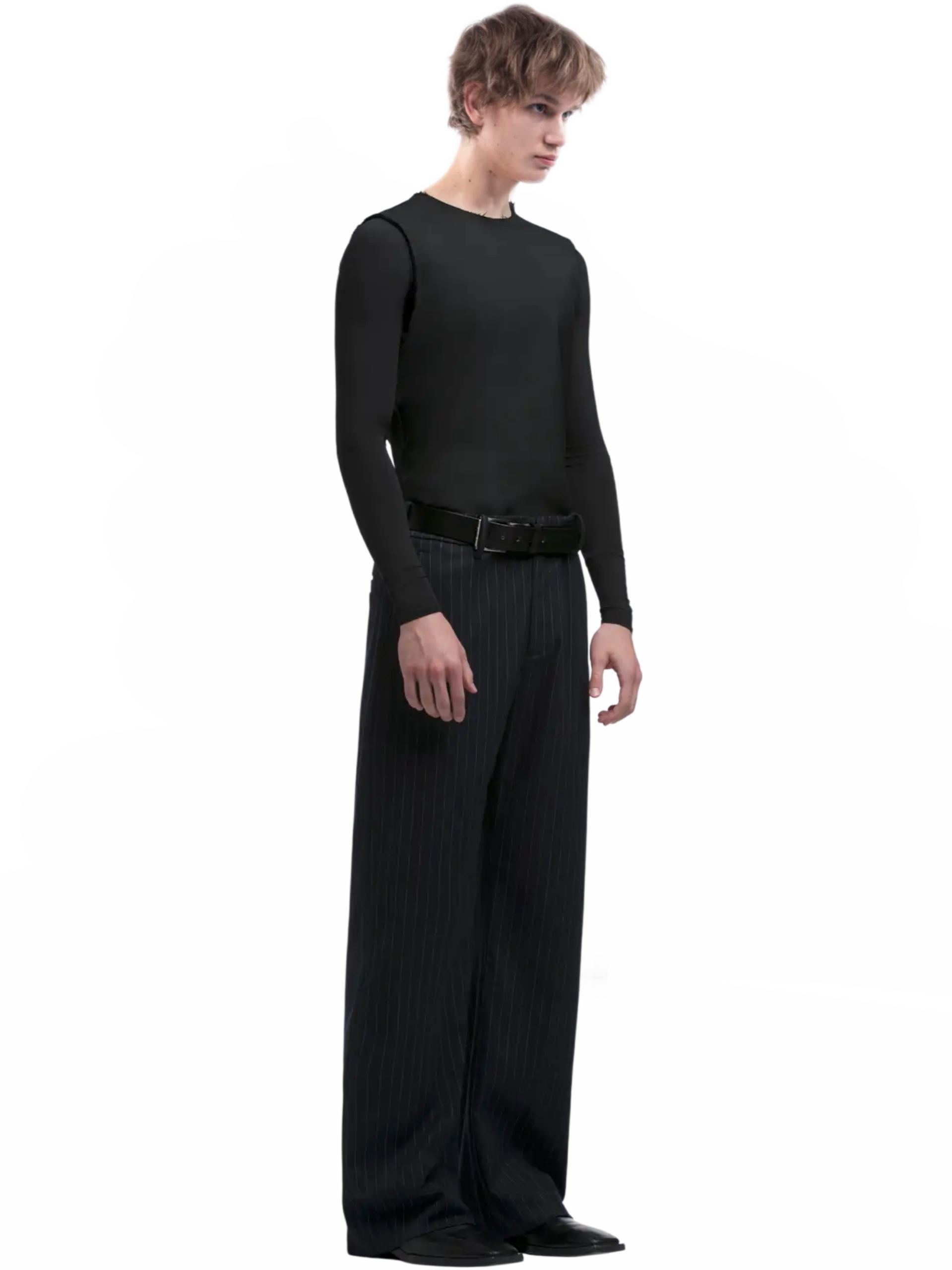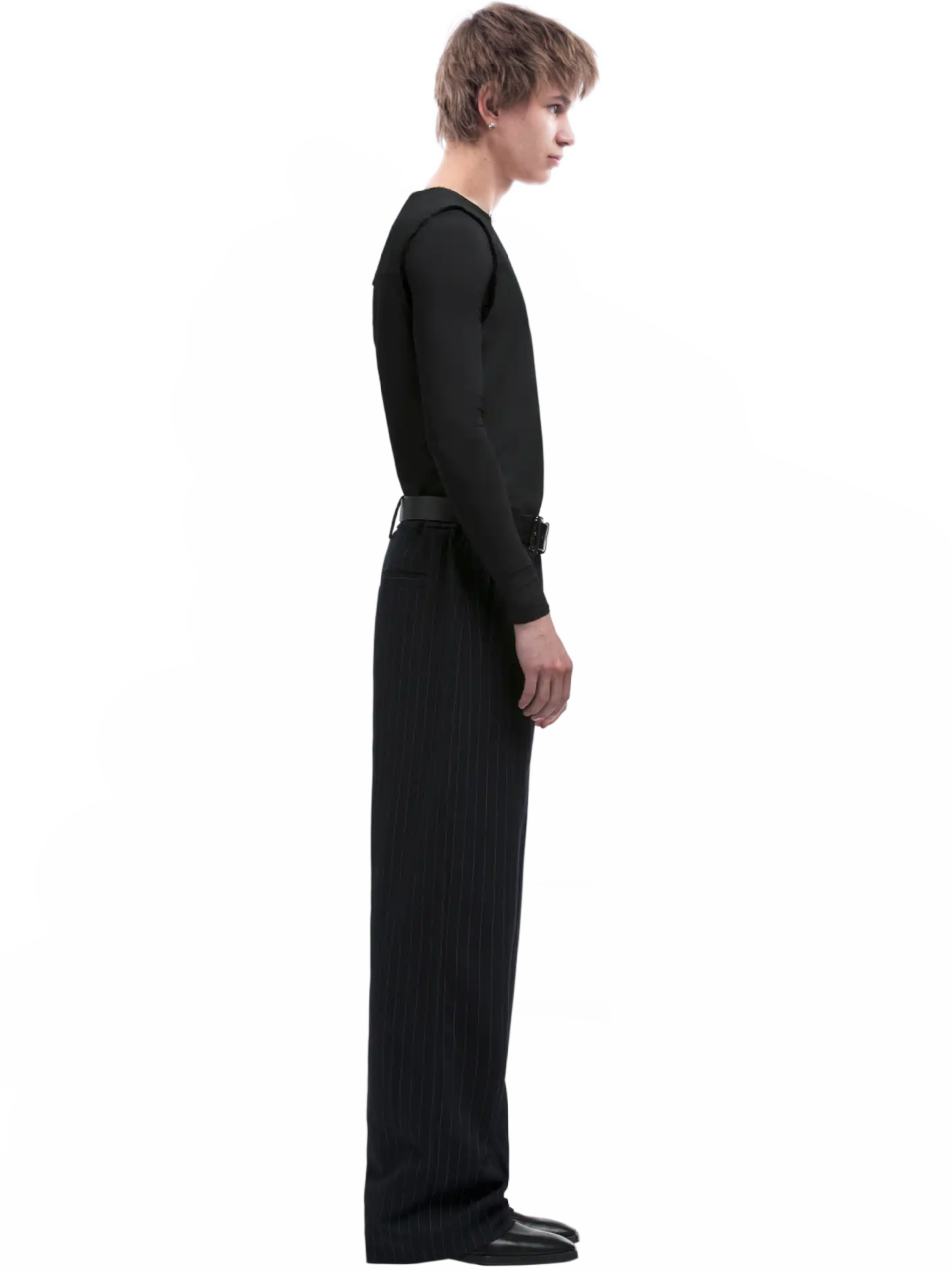 Designed to be worn high-waisted, the trousers feature adjustable straps for a customizable fit that ensures both comfort and style. Additionally, our Straight Leg Buttoned Cuff Trousers offer versatility with a classic D-ring waistband and matte popper detailing, striking the perfect balance between sophistication and streetwear-inspired aesthetics.