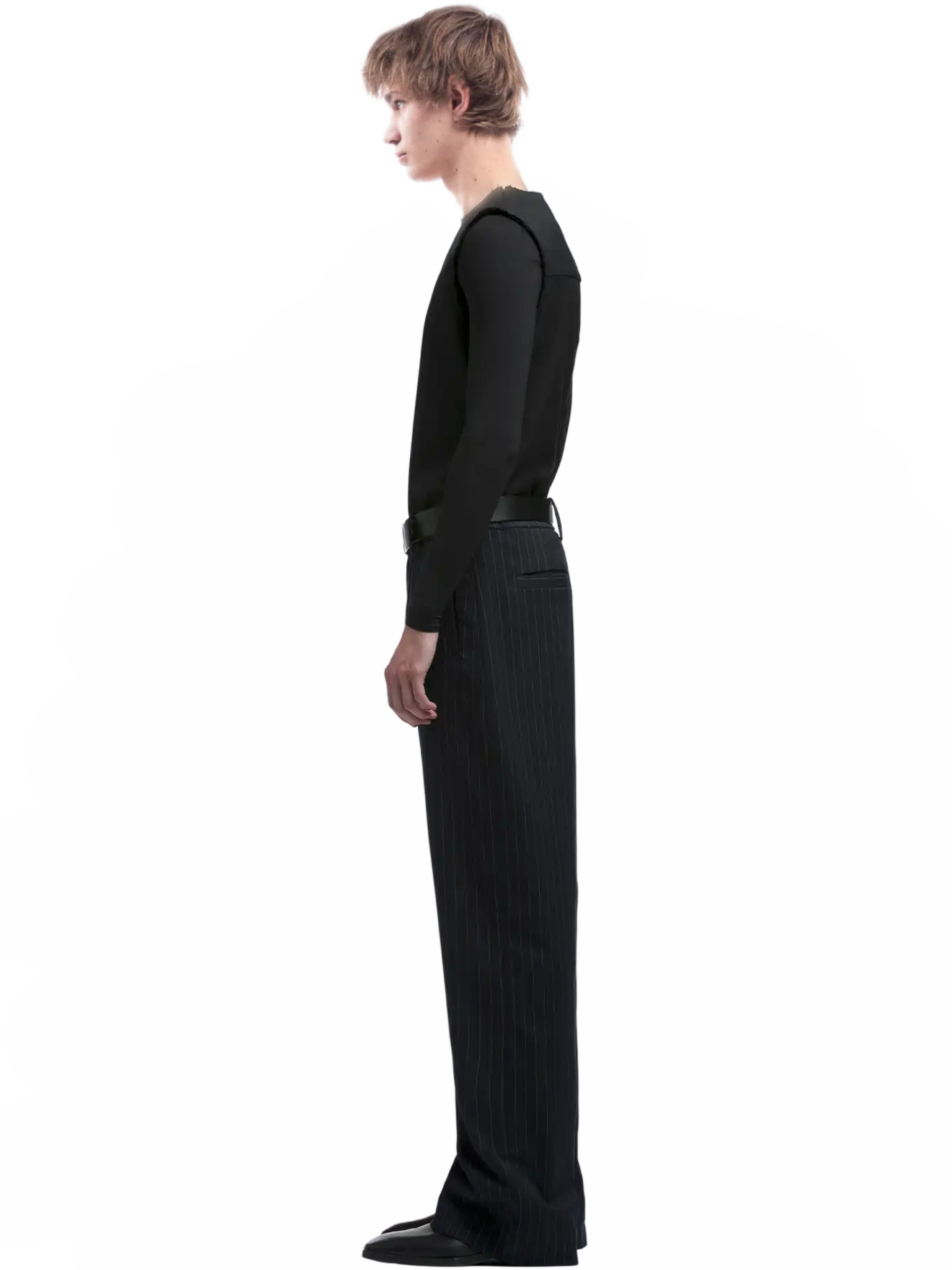 Every detail of the Montauk trousers speaks to our commitment to excellence. The luxurious black wool construction is accentuated by sleek side waist buckle detailing in a polished silver tone, elevating the trousers with a touch of sophistication. Pleated detailing adds depth and dimension to the silhouette, while the wide leg flared cut effortlessly blends classic style with contemporary flair.