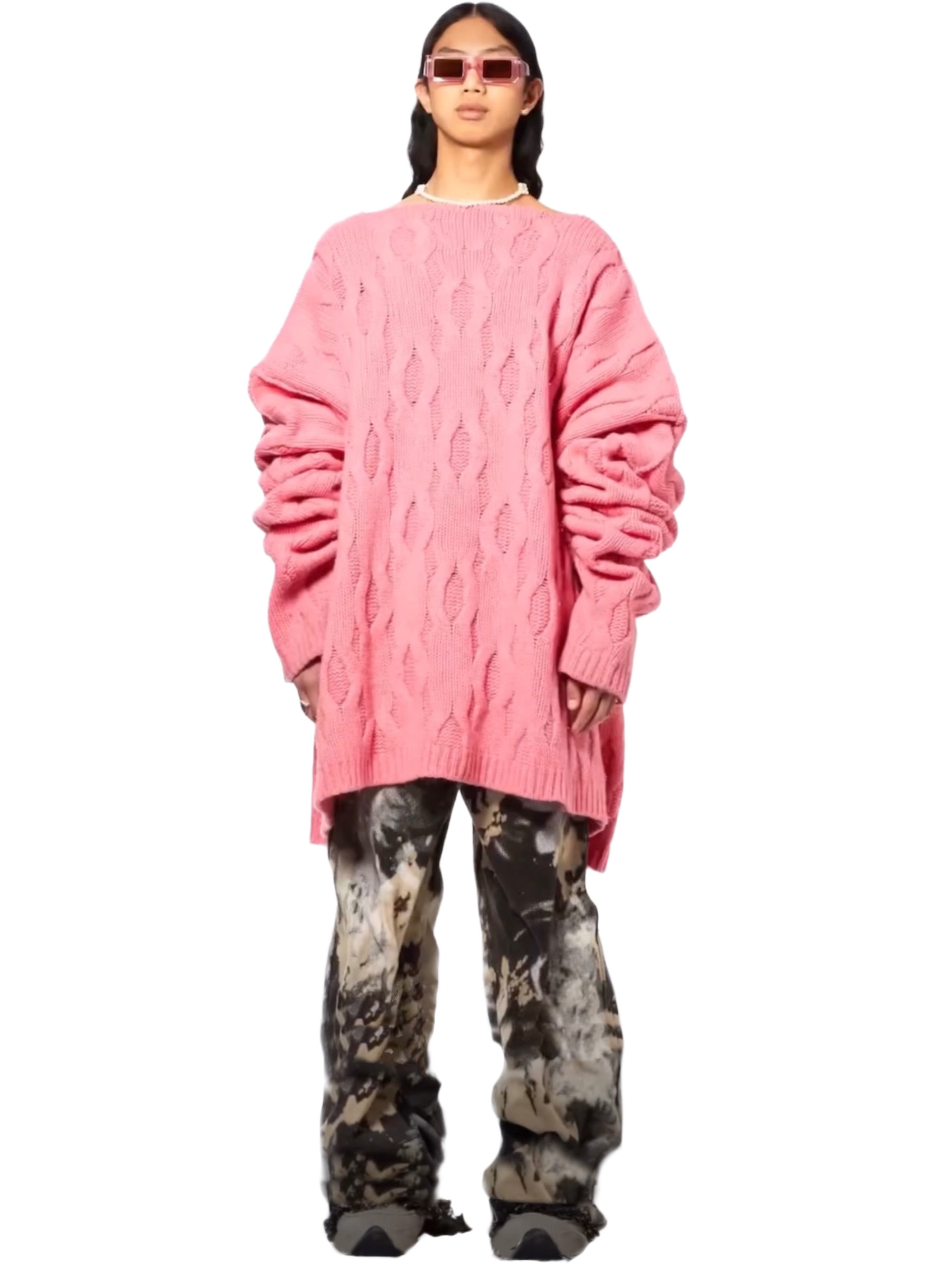 Immerse yourself in the sumptuous feel of the Cable Knit Oversized Sweater, meticulously curated for the Burning in Calabasas luxury experience.