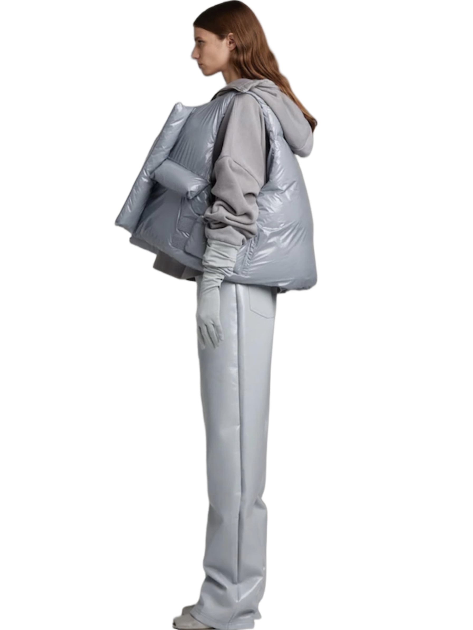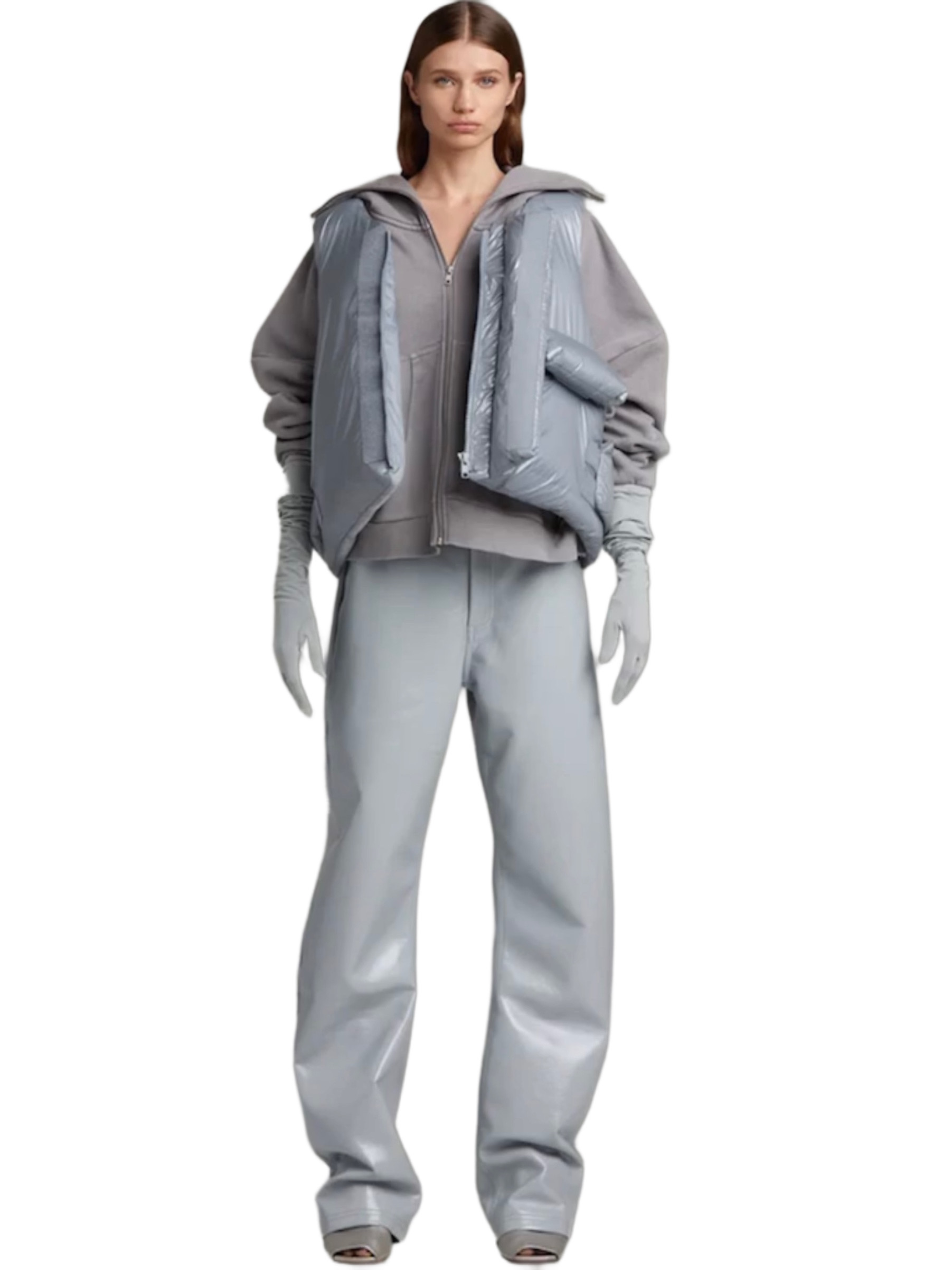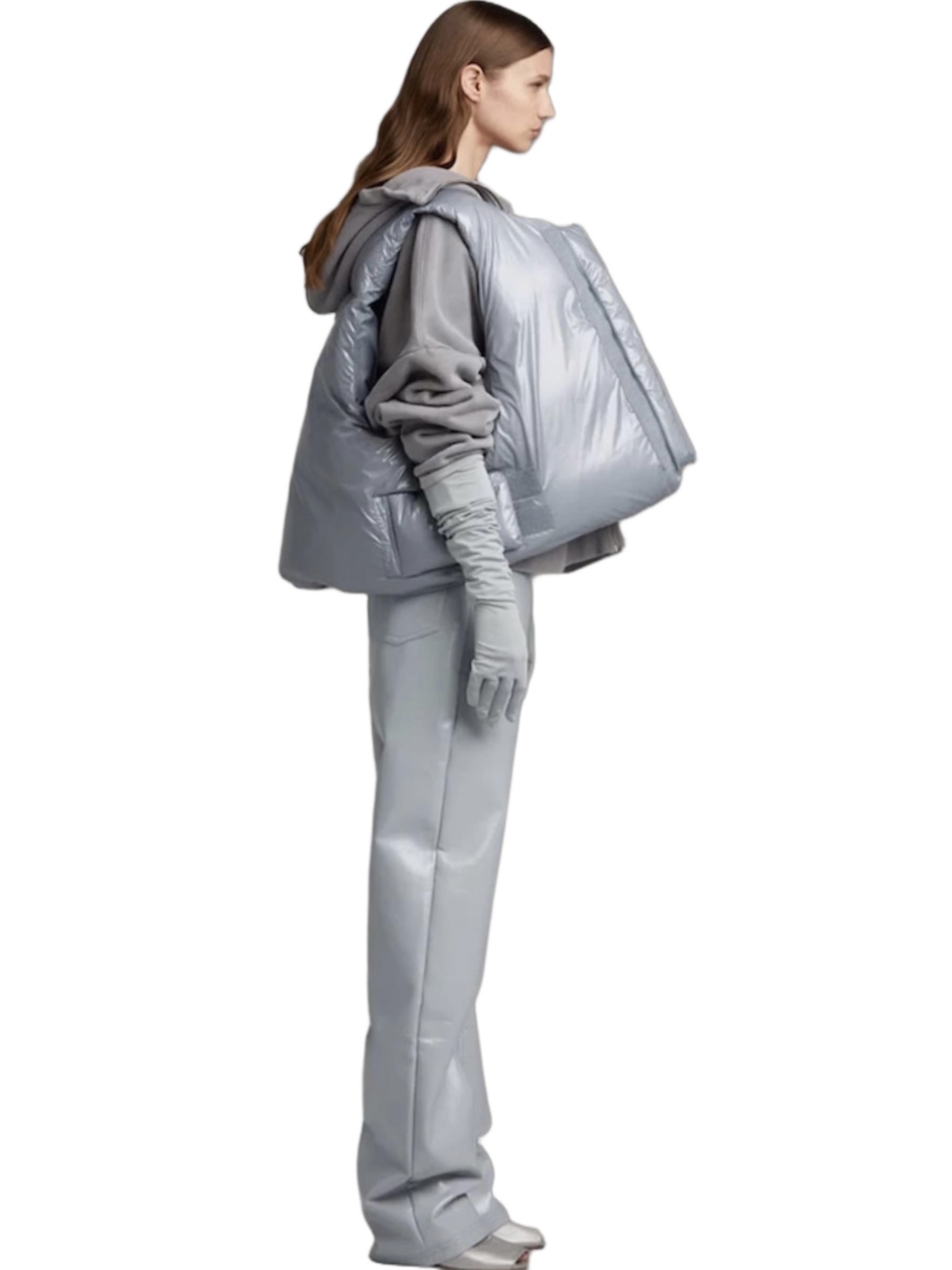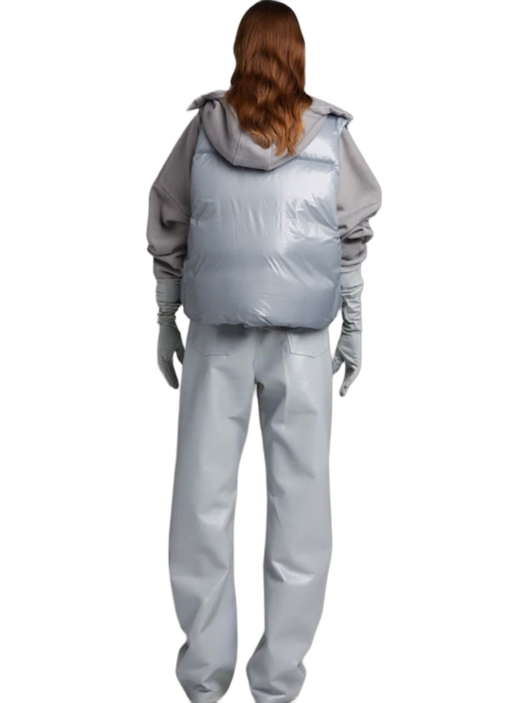 Embark on a journey where technical clothing style codes seamlessly merge with innovative fabrics and unconventional constructions, defining the modern allure of this BURNING IN CALABASAS vest. Crafted from innovative Re-Nylon, this style not only showcases a commitment to sustainability but also boasts functional pockets and a center zipper closure, adding a contemporary edge to your wardrobe.