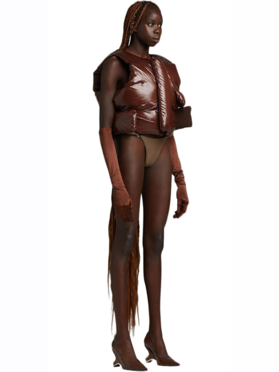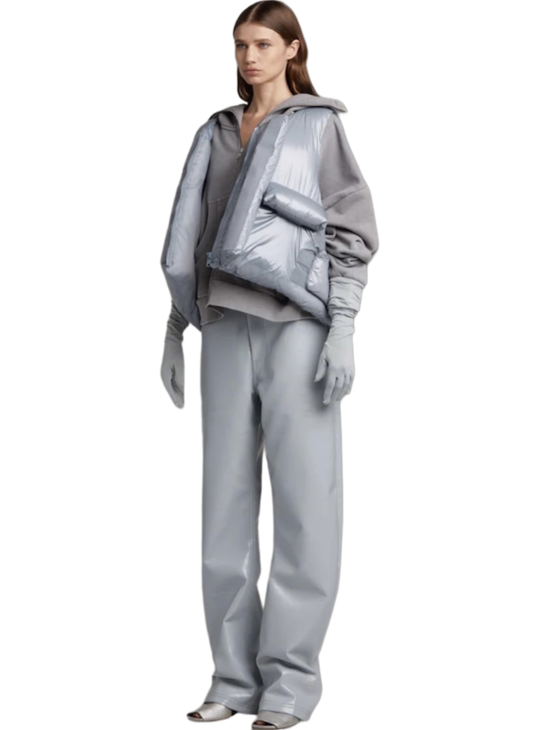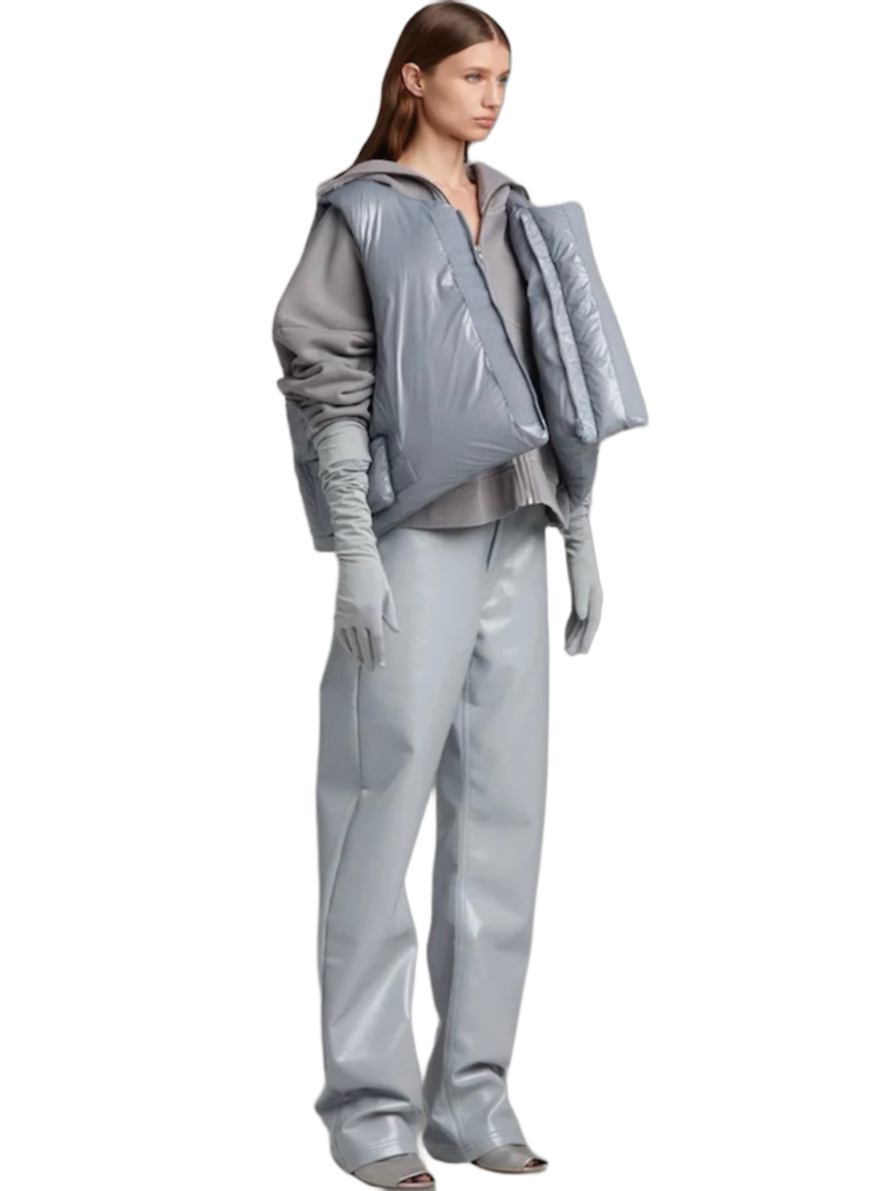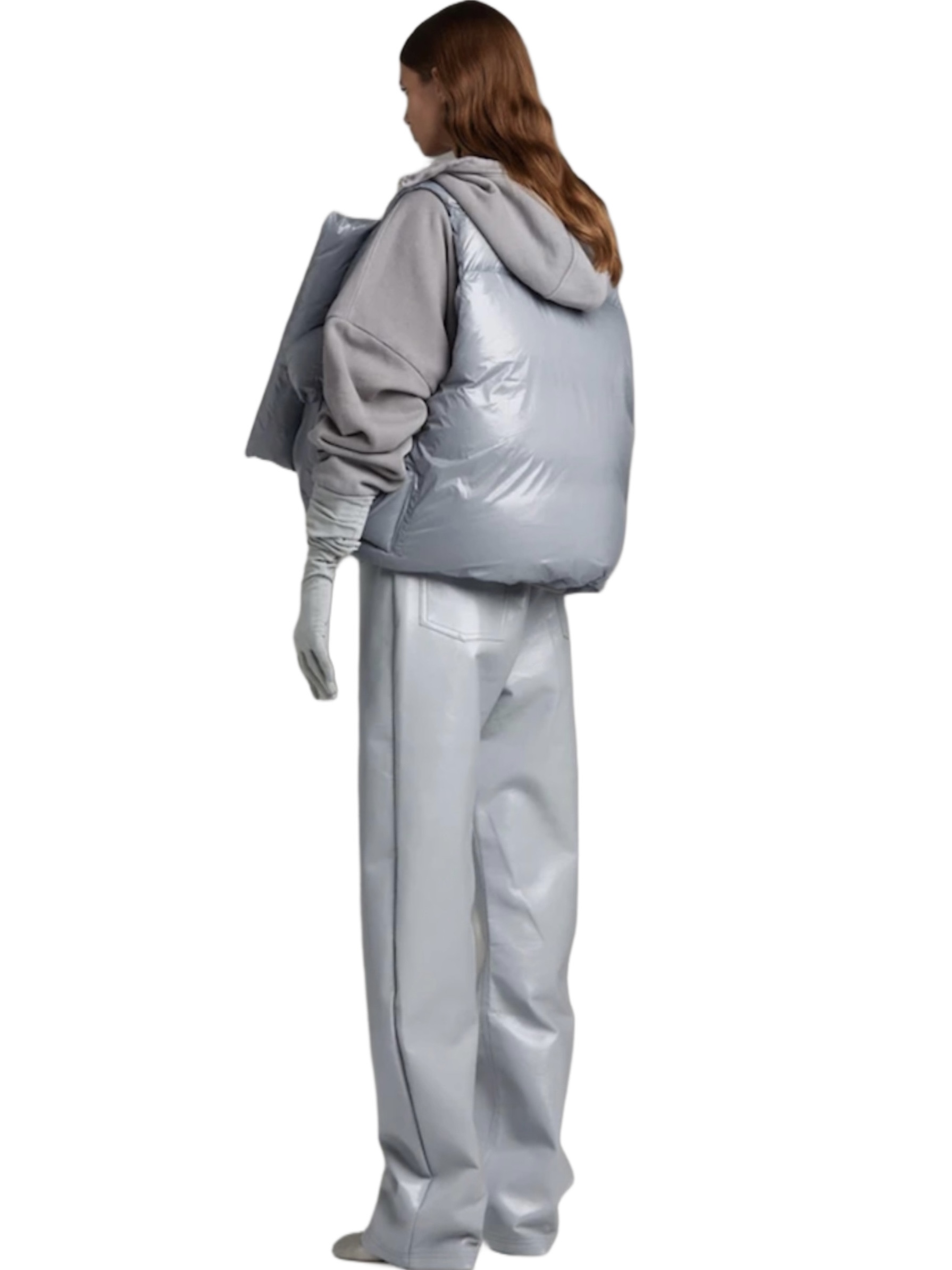 Embark on a journey where technical clothing style codes seamlessly merge with innovative fabrics and unconventional constructions, defining the modern allure of this BURNING IN CALABASAS vest. Crafted from innovative Re-Nylon, this style not only showcases a commitment to sustainability but also boasts functional pockets and a center zipper closure, adding a contemporary edge to your wardrobe.
